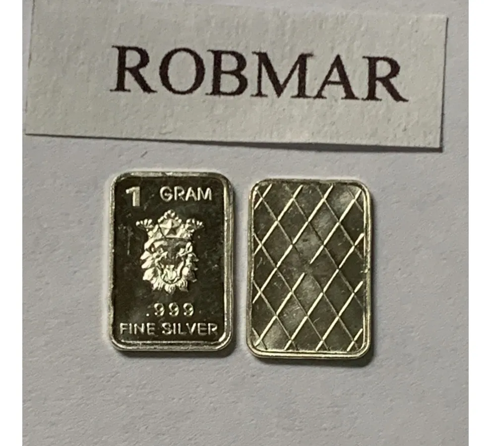 Robmar-U.S.A.-Lote de 5 lingotes x 1 gramo de plata pura 0,999-N°208-total 5 gramos, son 5 motivos diferentes en cada lote ,-este producto de origen de una refinería USA disponemos de muchos motivos en lote de diferentes, animales, armas, personajes, etc, numerados, ideal para coleccionar e invertir porque la plata aumenta en dólares por lo tanto, es mejor que tener dólares asi si aumenta el dólar y aumenta la plata protege mejor su inversión a futuro además por su tamaño y precio hace accesible su venta en caso de necesidad, también están en esta página en lingotes por unidad numerados del 1 al 130 y lotes de 3 Y de 5 unidades con motivos variados, al comprar estos lotes vera que el costo dividido por gramo le saldrá más económico cada gramo, de regalo se adjunta un listado de todos los motivos del 1 al 130 numerados , más la historia de la refinería de estados unidos que los fabrico de lo que hace y detalles de ella como un certificado más y protegidos con capsula plástica y con una descripción de su contenido