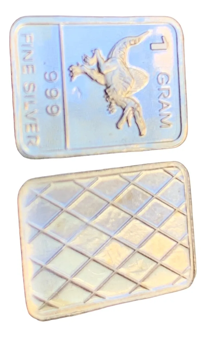 Lingote 1 g plata 24k diseño prehistórico (dinosaurio?) con estuche 3D. Temática jurásica muy llamativa.