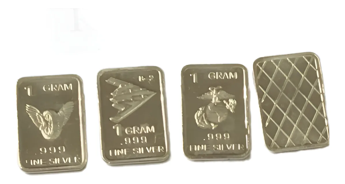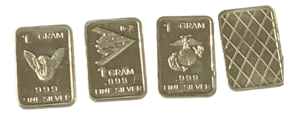 Robmar-U.S.A.-Lote de 3 lingotes x 1 gramo de plata pura 0,999-N°120-total 3 gramos, son 3 motivos diferentes en cada lote ,-este producto de origen de una refinerĂa USA disponemos de muchos motivos en lote de diferentes, animales, armas, personajes, etc, numerados, ideal para coleccionar e invertir porque la plata aumenta en dĂłlares por lo tanto, es mejor que tener dĂłlares asi si aumenta el dĂłlar y aumenta la plata protege mejor su inversiĂłn a futuro además por su tamaño y precio hace accesible su venta en caso de necesidad, tambiĂ©n están en esta página en lingotes por unidad numerados del 1 al 130 y lotes de 3 Y de 5 unidades con motivos variados, al comprar estos lotes vera que el costo dividido por gramo le saldrá más econĂłmico cada gramo, de regalo se adjunta un listado de todos los motivos del 1 al 130 numerados , más la historia de la refinerĂa de estados unidos que los fabrico de lo que hace y detalles de ella como un certificado más y protegidos con capsula plástica y con una descripciĂłn de su contenido