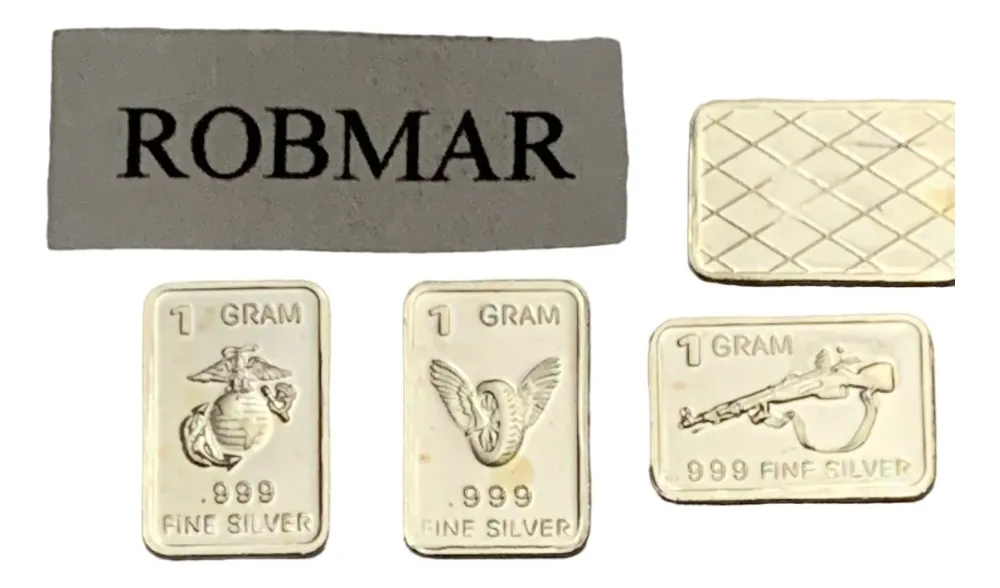 Robmar-U.S.A.-Lote de 3 lingotes x 1 gramo de plata pura 0,999-N°123-total 3 gramos, son 3 motivos diferentes en cada lote ,-este producto de origen de una refinerĂa USA disponemos de muchos motivos en lote de diferentes, animales, armas, personajes, etc, numerados, ideal para coleccionar e invertir porque la plata aumenta en dĂłlares por lo tanto, es mejor que tener dĂłlares asi si aumenta el dĂłlar y aumenta la plata protege mejor su inversiĂłn a futuro además por su tamaño y precio hace accesible su venta en caso de necesidad, tambiĂ©n están en esta página en lingotes por unidad numerados del 1 al 130 y lotes de 3 Y de 5 unidades con motivos variados, al comprar estos lotes vera que el costo dividido por gramo le saldrá más econĂłmico cada gramo, de regalo se adjunta un listado de todos los motivos del 1 al 130 numerados , más la historia de la refinerĂa de estados unidos que los fabrico de lo que hace y detalles de ella como un certificado más y protegidos con capsula plástica y con una descripciĂłn de su contenido