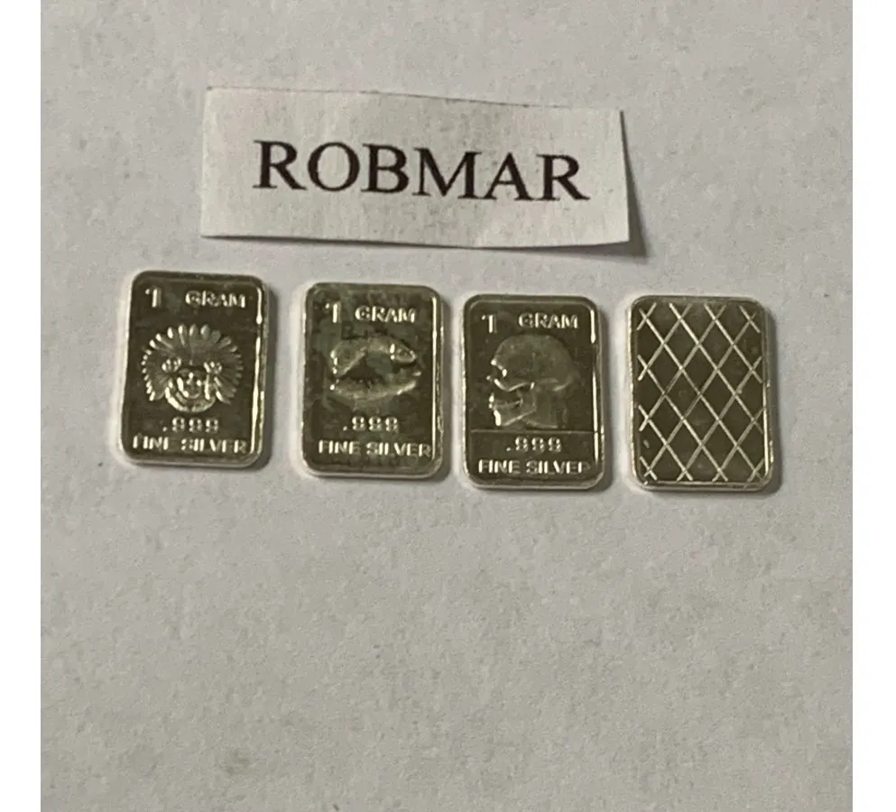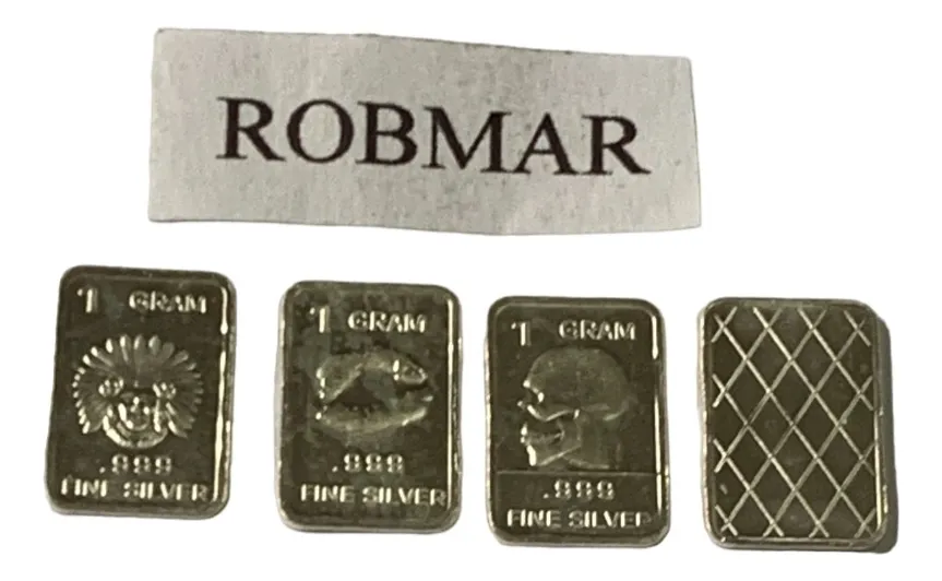 Robmar-U.S.A.-Lote de 3 lingotes x 1 gramo de plata pura 0,999-N°131-total 3 gramos, son 3 motivos diferentes en cada lote ,-este producto de origen de una refinerĂa USA disponemos de muchos motivos en lote de diferentes, animales, armas, personajes, etc, numerados, ideal para coleccionar e invertir porque la plata aumenta en dĂłlares por lo tanto, es mejor que tener dĂłlares asi si aumenta el dĂłlar y aumenta la plata protege mejor su inversiĂłn a futuro además por su tamaño y precio hace accesible su venta en caso de necesidad, tambiĂ©n están en esta página en lingotes por unidad numerados del 1 al 130 y lotes de 3 Y de 5 unidades con motivos variados, al comprar estos lotes vera que el costo dividido por gramo le saldrá más econĂłmico cada gramo, de regalo se adjunta un listado de todos los motivos del 1 al 130 numerados , más la historia de la refinerĂa de estados unidos que los fabrico de lo que hace y detalles de ella como un certificado más y protegidos con capsula plástica y con una descripciĂłn de su contenido