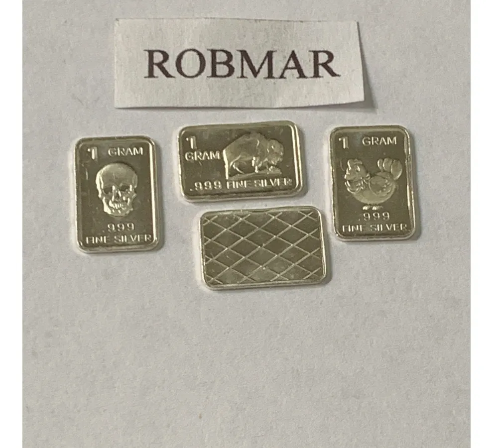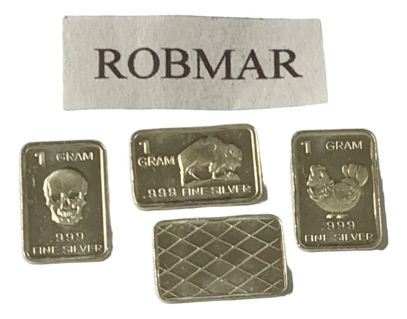 Robmar-U.S.A.-Lote de 3 lingotes x 1 gramo de plata pura 0,999-N°135-total 3 gramos, son 3 motivos diferentes en cada lote ,-este producto de origen de una refinería USA disponemos de muchos motivos en lote de diferentes, animales, armas, personajes, etc, numerados, ideal para coleccionar e invertir porque la plata aumenta en dólares por lo tanto, es mejor que tener dólares asi si aumenta el dólar y aumenta la plata protege mejor su inversión a futuro además por su tamaño y precio hace accesible su venta en caso de necesidad, también están en esta página en lingotes por unidad numerados del 1 al 130 y lotes de 3 Y de 5 unidades con motivos variados, al comprar estos lotes vera que el costo dividido por gramo le saldrá más económico cada gramo, de regalo se adjunta un listado de todos los motivos del 1 al 130 numerados , más la historia de la refinería de estados unidos que los fabrico de lo que hace y detalles de ella como un certificado más y protegidos con capsula plástica y con una descripción de su contenido