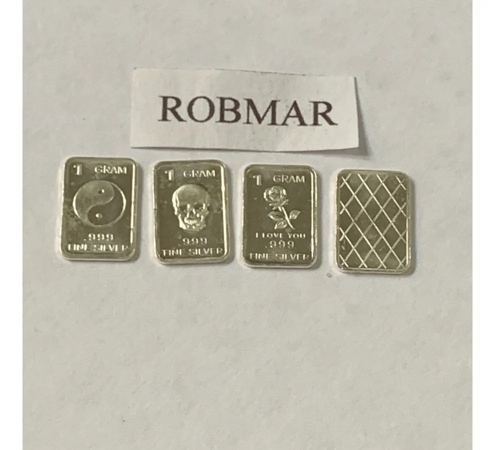 Robmar-U.S.A.-Lote de 3 lingotes x 1 gramo de plata pura 0,999-N°134-total 3 gramos, son 3 motivos diferentes en cada lote ,-este producto de origen de una refinerĂa USA disponemos de muchos motivos en lote de diferentes, animales, armas, personajes, etc, numerados, ideal para coleccionar e invertir porque la plata aumenta en dĂłlares por lo tanto, es mejor que tener dĂłlares asi si aumenta el dĂłlar y aumenta la plata protege mejor su inversiĂłn a futuro además por su tamaño y precio hace accesible su venta en caso de necesidad, tambiĂ©n están en esta página en lingotes por unidad numerados del 1 al 130 y lotes de 3 Y de 5 unidades con motivos variados, al comprar estos lotes vera que el costo dividido por gramo le saldrá más econĂłmico cada gramo, de regalo se adjunta un listado de todos los motivos del 1 al 130 numerados , más la historia de la refinerĂa de estados unidos que los fabrico de lo que hace y detalles de ella como un certificado más y protegidos con capsula plástica y con una descripciĂłn de su contenido