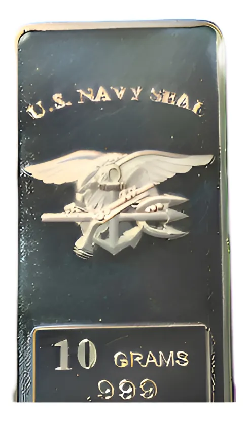 ROBMAR-USA-LINGOTE DE 10 GRAMOS DE PLATA PURA 24K.N°107-simbolo de la fuerza Naval