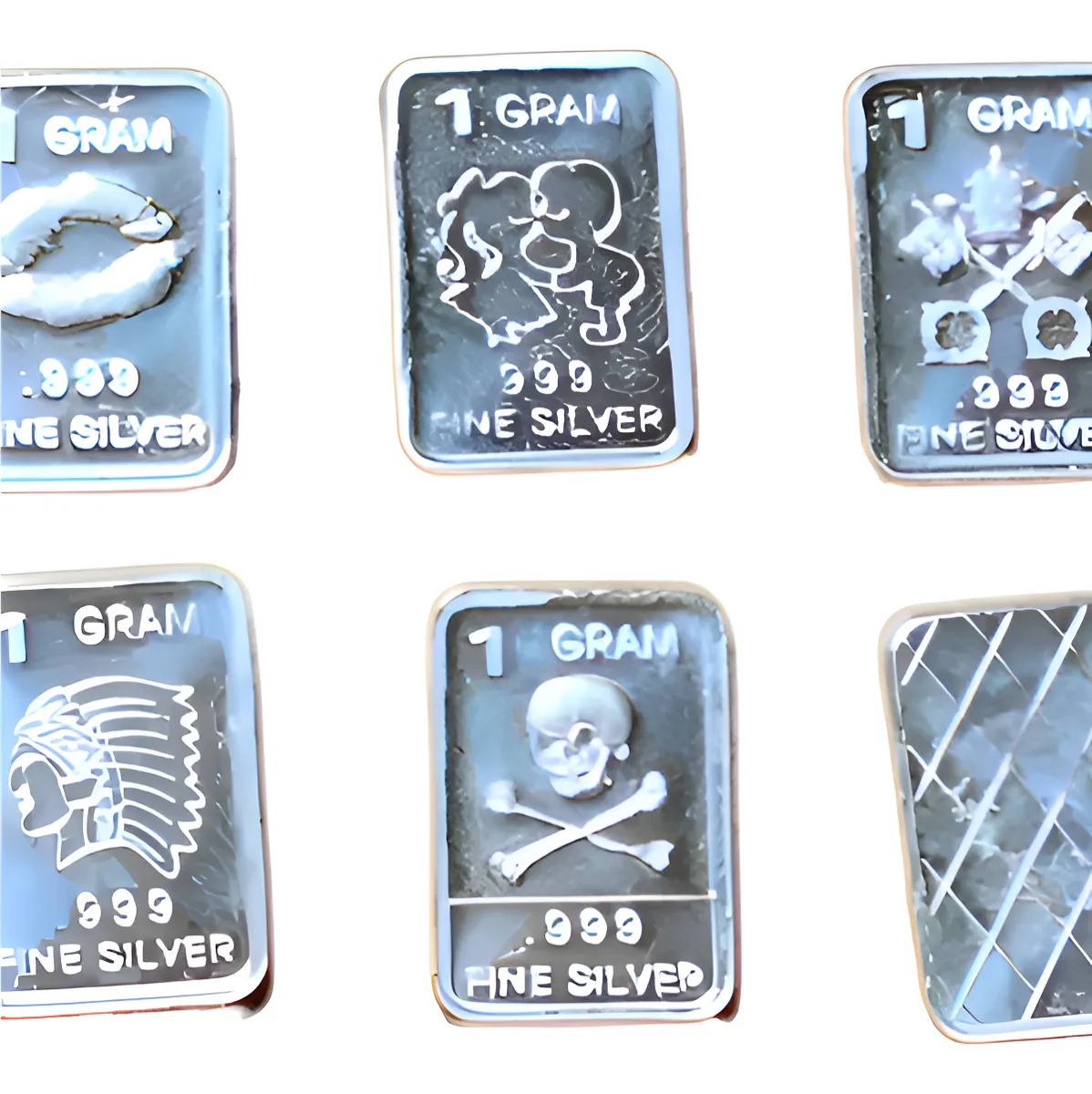 Robmar-U.S.A.-Lote de 5 lingotes x 1 gramo de plata pura 0,999-N°214-total 5 gramos, son 5 motivos diferentes en cada lote ,-este producto de origen de una refinería USA disponemos de muchos motivos en lote de diferentes, animales, armas, personajes, etc, numerados, ideal para coleccionar e invertir porque la plata aumenta en dólares por lo tanto, es mejor que tener dólares asi si aumenta el dólar y aumenta la plata protege mejor su inversión a futuro además por su tamaño y precio hace accesible su venta en caso de necesidad, también están en esta página en lingotes por unidad numerados del 1 al 130 y lotes de 3 Y de 5 unidades con motivos variados, al comprar estos lotes vera que el costo dividido por gramo le saldrá más económico cada gramo, de regalo se adjunta un listado de todos los motivos del 1 al 130 numerados , más la historia de la refinería de estados unidos que los fabrico de lo que hace y detalles de ella como un certificado más y protegidos con capsula plástica y con una descripción de su contenido