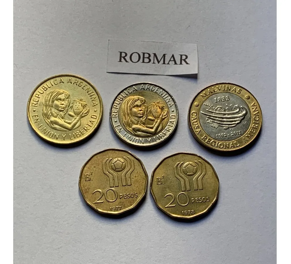 Robmar-Argentina-14 Conmemorativas,n° 2 Lote De 1 Y 2 Pesos