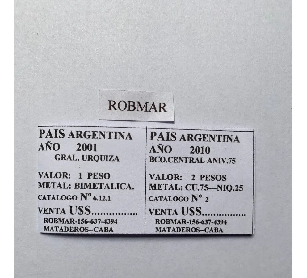 Robmar-Argentina-4 Conmemorativas,n°10 Lote De 1 Y 2 Pesos