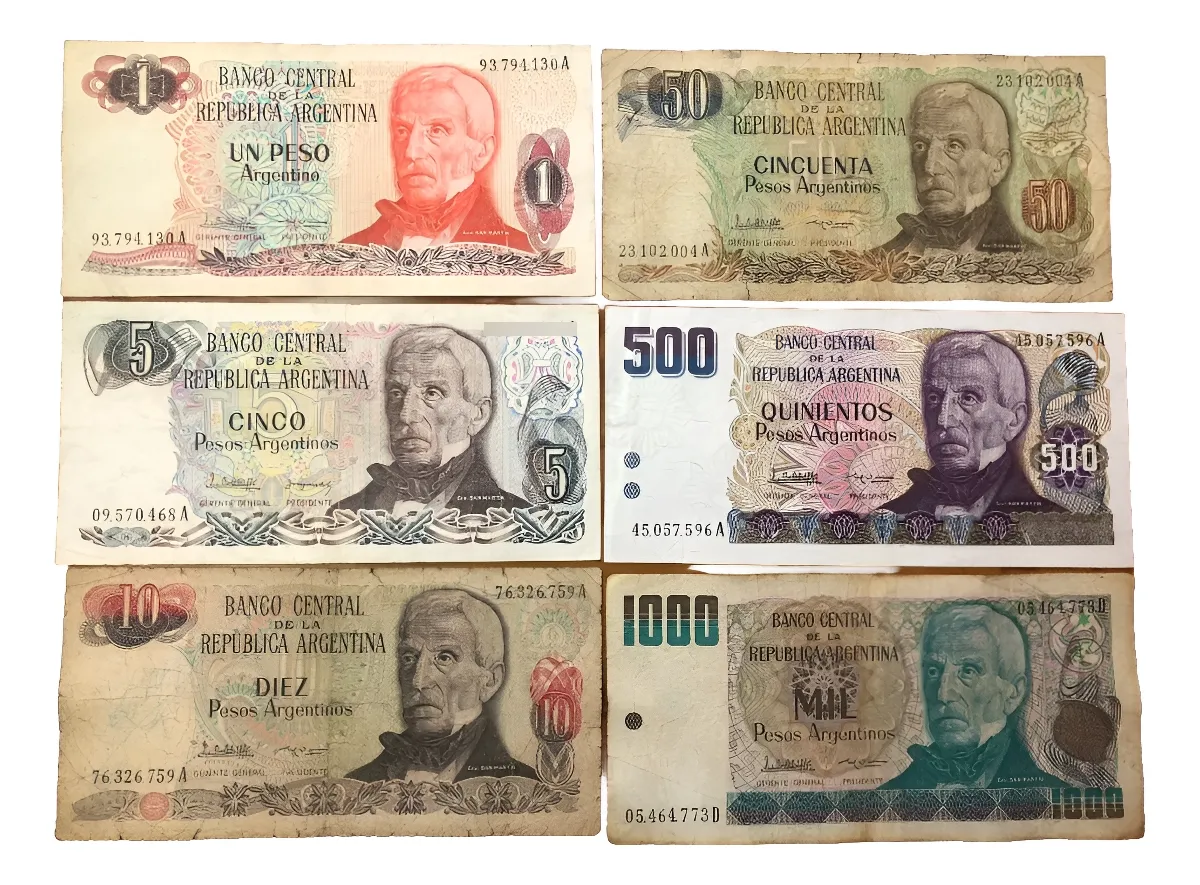 Este set de seis billetes distintos de pesos argentinos ofrece variedad en diseño y emisores, reflejando episodios económicos y polÃticos importantes. Su diversidad aumenta el interés para coleccionismo especializado y el potencial de valorización futura por su representatividad histórica.
