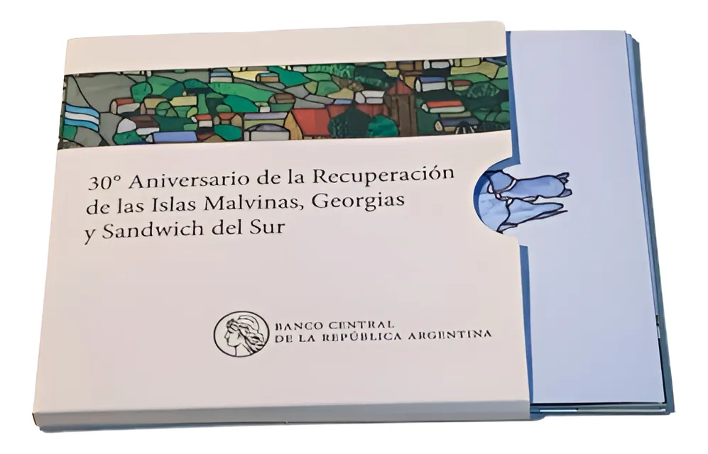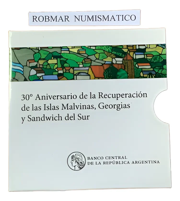 Estuche con monedas del 30° aniversario de Malvinas, tirada limitada. Pieza muy interesante para coleccionismo histórico argentino. directa del banco central, en estuche que se emitieron solo 5000 unidades casi agotada, por ser grande la demanda de argentinos, coleccionistas y revendedores para homenajear la guerra de las malvinas, hermoso recuerdo de nuestro pais