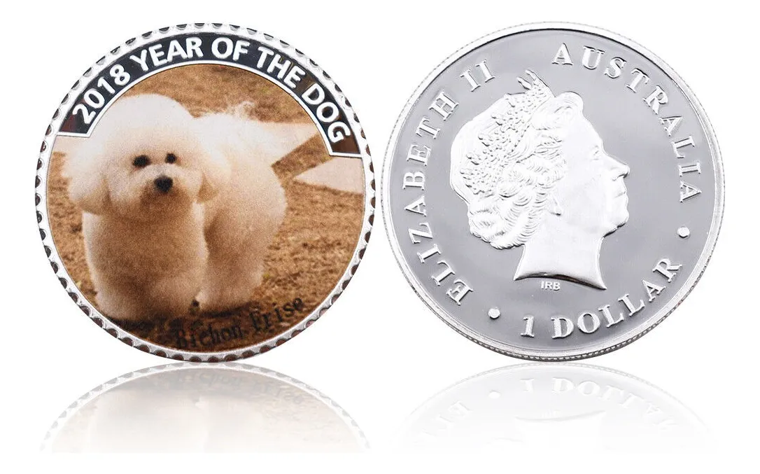 Moneda «Richu Price», baño plata serie perros. Diseño canino australiano especial es de 30mm, de diametro-Hay mas de esta serie de animales vea si esta su mascota con capsula plastica protejiendolo