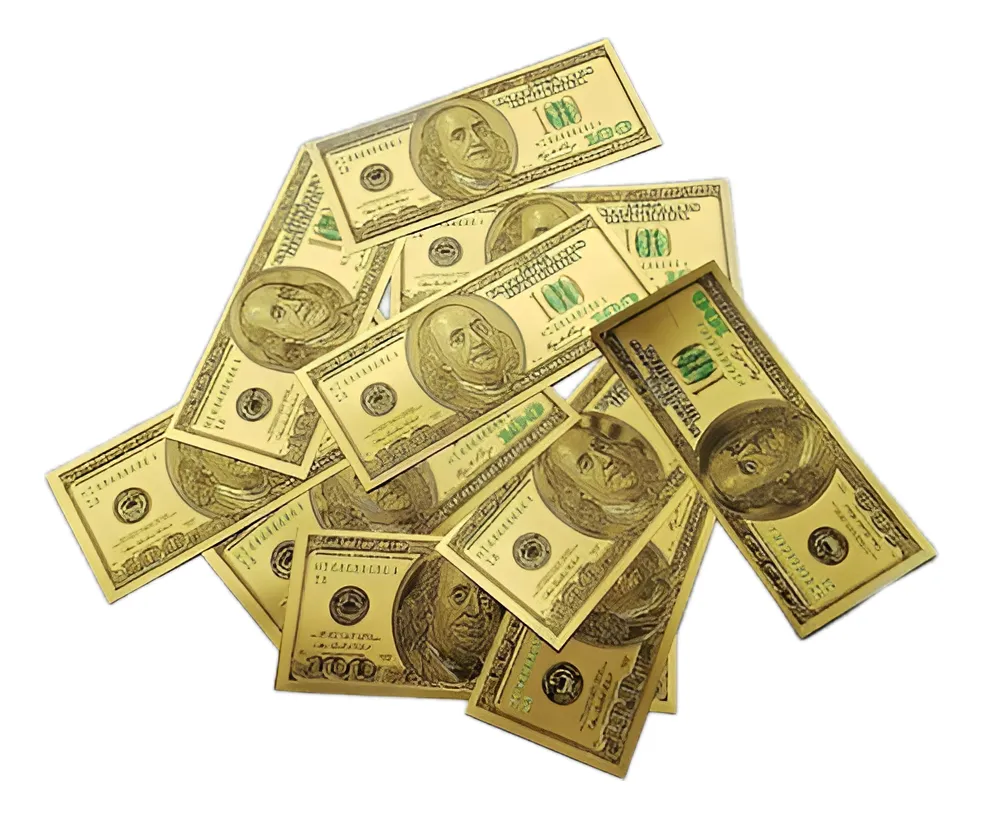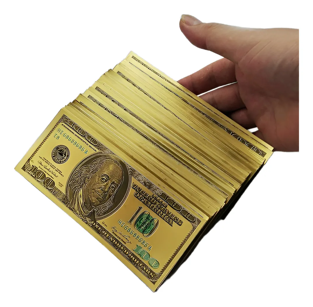 Billete coleccionable estadounidense de 100 dólares, elegantemente bañado en oro de 24 kilates, que fusiona valor numismático y arte. Ideal para coleccionistas y entusiastas de piezas premium con potencia de valorización futura, dada su exclusividad y presentación única.