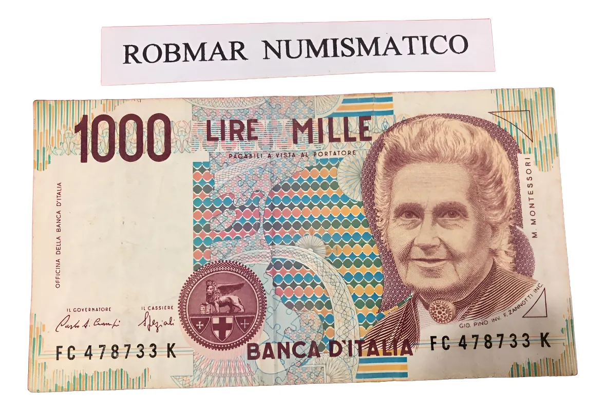 El billete de 1000 liras italiano de 1990 muestra el retrato de Maria Montessori, figura educativa histórica. Emitido por la Banca d’Italia, destaca por su atractivo diseño y como muestra de la moneda italiana previa al euro.