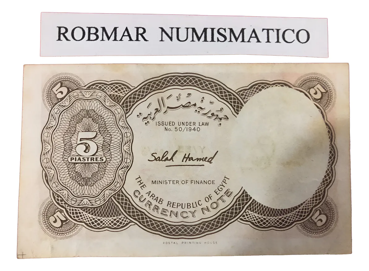 Robmar Billete-egipto Clasificado5 Piastres Del 1952