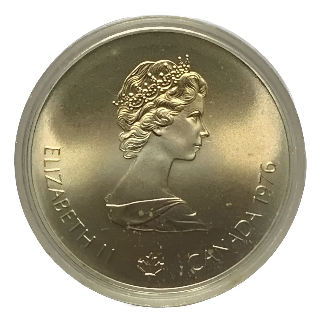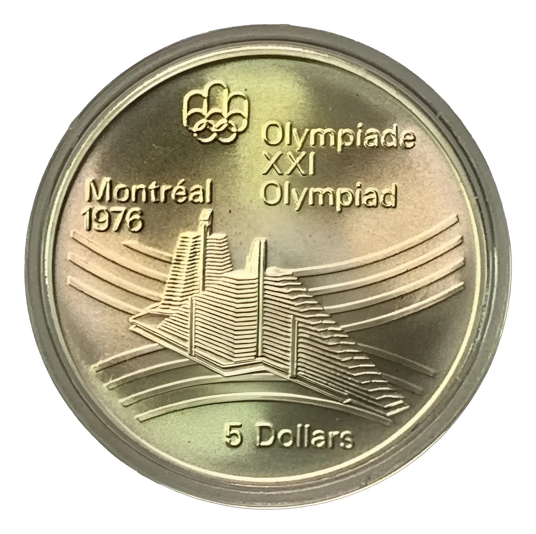 Moneda canadiense de 5 dólares 1976, 24,3 g de plata de alta pureza, con diseño de la ciudad olímpica. Ideal para coleccionistas de monedas urbanas y fans de Montreal 1976.moneda emitida para la xxi olynpiada de montreal de 1976 con valor facial de 5 dolares incluido y detallando deportes y figuras conmemorativas del pais de Canada, muy requerida por los coleccionistas por su poca emision y tambien por su metal de plata pura como inversion a futuro, cuanto mas pasa el tiempo mas aumentara su valor por su pronta excases y su metal ideal para inversores de todo el mundo solo una de cada, no se la pierda se agota