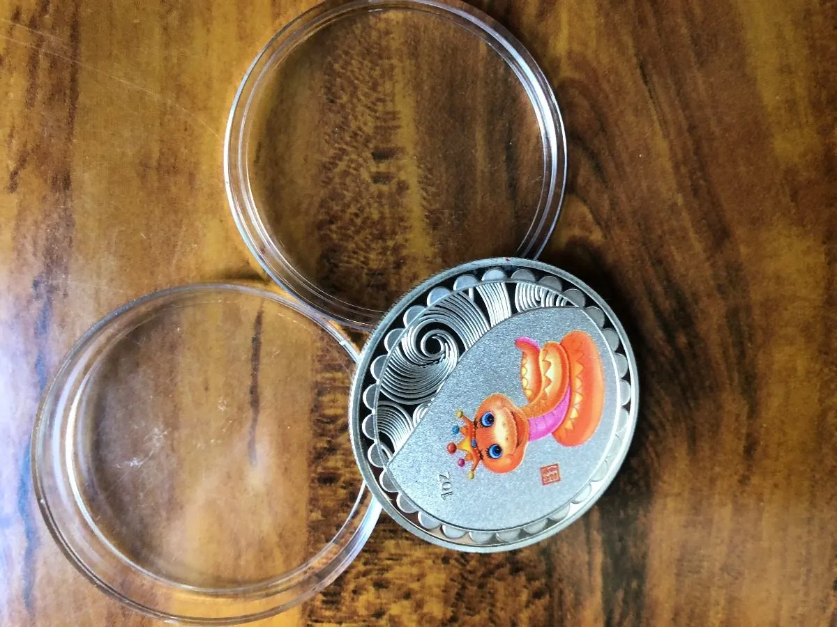 Moneda china VĂbora 2013 + regalo 1 billete de serie . Otra variante del set zodiacal chino muy coleccionable.con motivo de vivora como dibujo animado