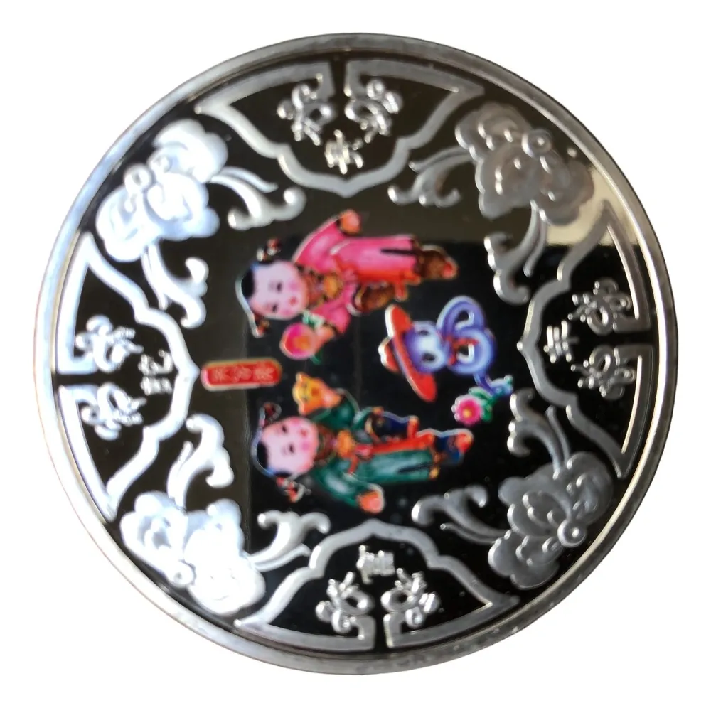 Moneda conmemorativa china de 50 mm emitida en 2010, bañada en plata .999. Pieza nueva de acabado brillante, su diseño celebra valores y cultura tradicional, perfecta para coleccionistas de monedas asiáticas de calidad superior.
