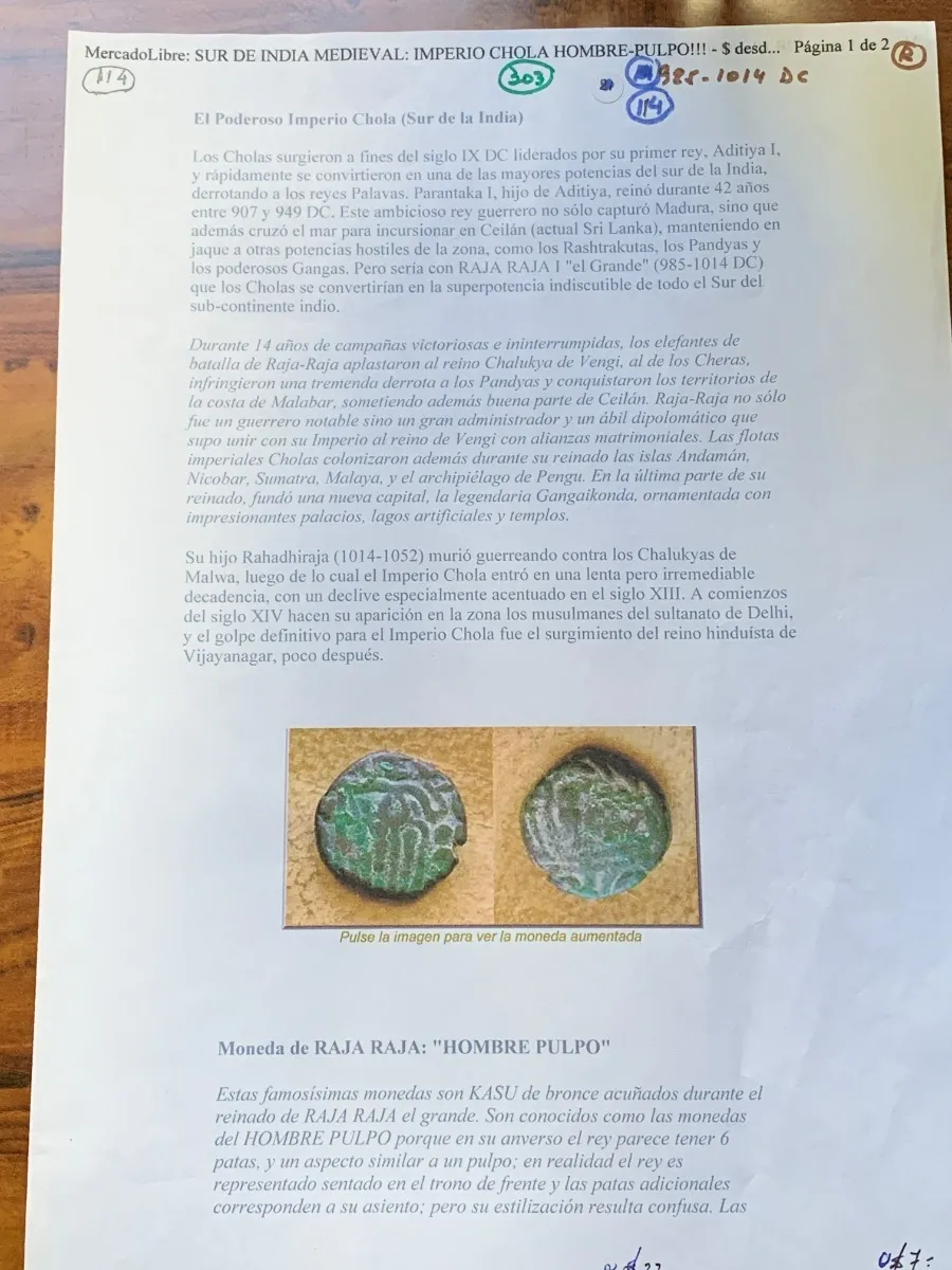 Robmar-India-F14-Cholas De Thanjavur-985/1014 D.C.-Muy RaraRobmar-India-F14-Cholas De Thanjavur-985/1014 D.C.-Muy Rara