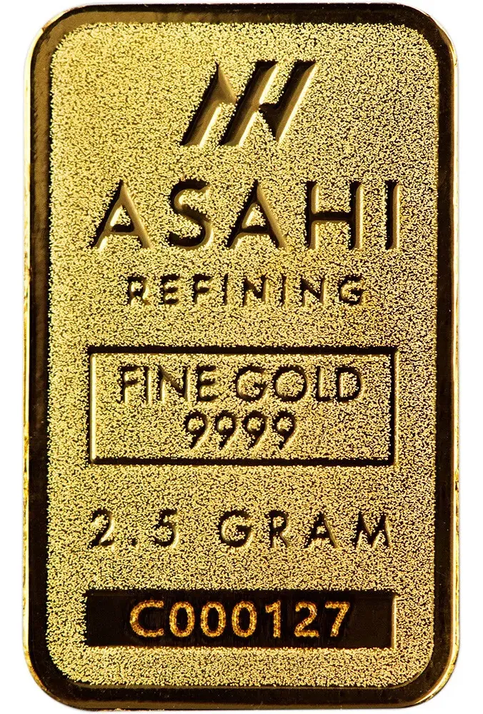 Lingote con 2,5 gramos de oro puro 0,9999 refineria ASAHI , con logo y sello de la casa . con capsula plástica protegiéndolo, el certificado y todo dentro de un blÃster sellado y numerado, Ideal como inversión fraccionada, regalo y complemento de cartera en metales.​enviamos de regalo la historia de la refinerÃa que lo fabrico como un aval más de certificación, tenemos de 2,5 gramos y 5 gramos entero y publicados , cuantos mas compre en lotes o el blÃster vera que el precio de cada gramo disminuye el costo por gramo que compra de a una unidad.-en algunos casos es mucho mas puro es 0.9999 se lo denomina oro karak mil veces mas puro