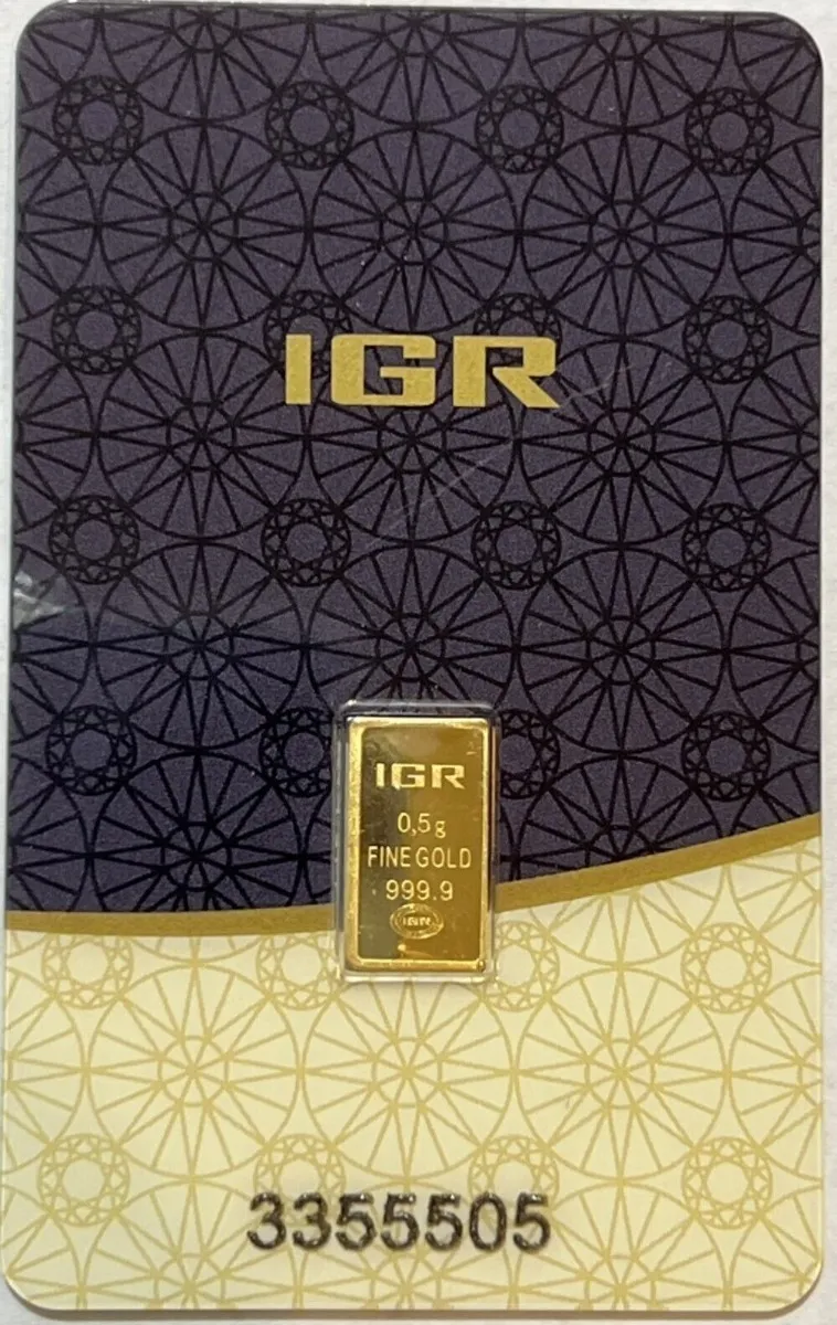 Lingote de oro 24k de medio gramo 0,999,9-procedente de Estambul, sellado de origen. Ideal para inversión fraccionada y colección de barras extranjeras.