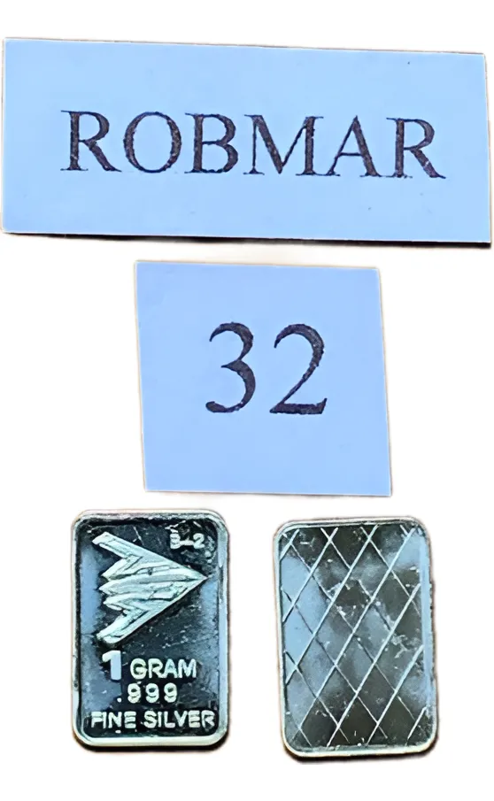 Robmar-U.S.A.-Lingote de 1 gramo de plata pura 0,999-n°32-un Avion supersonico,-este producto de origen de una refinería USA disponemos de 130 motivos diferentes, animales, armas, personajes, etc, numerados del 1 al 130 ideal para coleccionar e invertir porque la plata aumenta en dólares por lo tanto, es mejor que tener dólares asi si aumenta el dólar y aumenta la plata protege mejor su inversión a futuro además por su tamaño y precio hace accesible su venta en caso de necesidad, también están en esta pagina lotes de 3 unidades o de 5 unidades con motivos variados, al comprar estos lotes vera que el costo dividido por gramo le saldrá mas económico cada gramo, de regalo se adjunta un listado de todos los motivos y números más la historia de la refinería de estados unidos de lo que hace y detalles de ella como un certificado mas