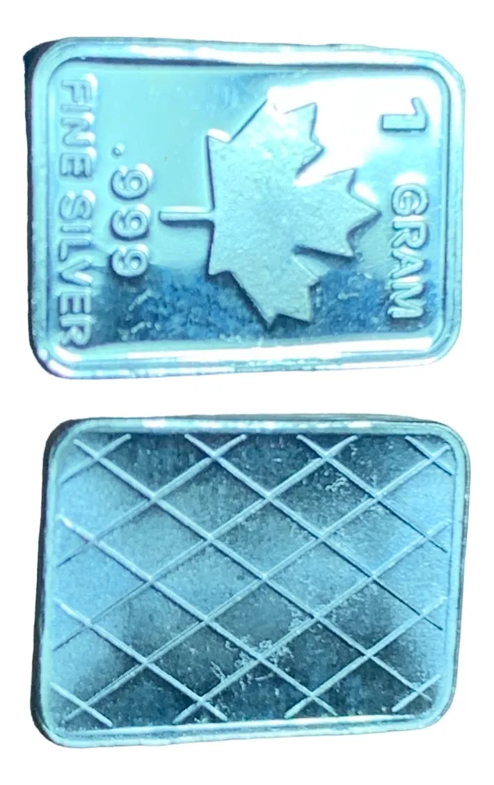 Lingote de 1g plata 24k, con motivo de hoja de arce. Ideal para coleccionistas que buscan rarezas y sĂmbolos naturales. Estuche 3D, pensado para resaltar su valor visual y conservar la pieza.