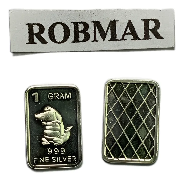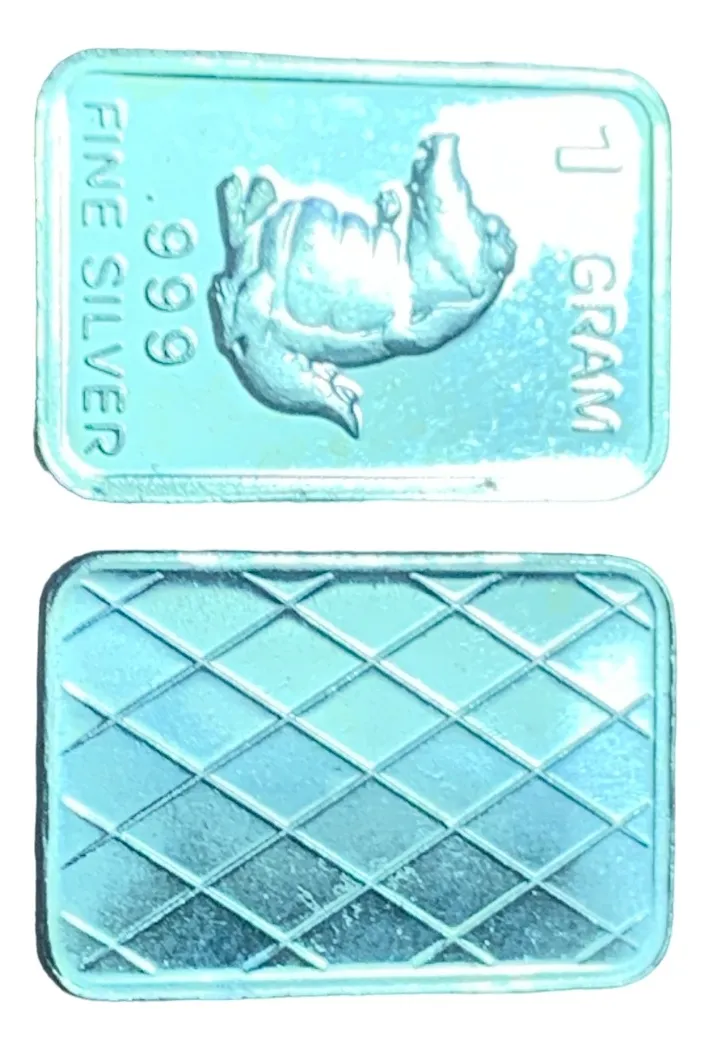 Robmar-U.S.A.-Lingote de 1 gramo de plata pura 0,999-n°6-un Cocodrilo,-este producto de origen de una refinerĂa USA disponemos de 130 motivos diferentes, animales, armas, personajes, etc, numerados del 1 al 130 ideal para coleccionar e invertir porque la plata aumenta en dĂłlares por lo tanto, es mejor que tener dĂłlares asi si aumenta el dĂłlar y aumenta la plata protege mejor su inversiĂłn a futuro además por su tamaño y precio hace accesible su venta en caso de necesidad, tambiĂ©n están en esta pagina lotes de 3 unidades o de 5 unidades con motivos variados, al comprar estos lotes vera que el costo dividido por gramo le saldrá mas econĂłmico cada gramo, de regalo se adjunta un listado de todos los motivos y nĂşmeros más la historia de la refinerĂa de estados unidos de lo que hace y detalles de ella como un certificado mas