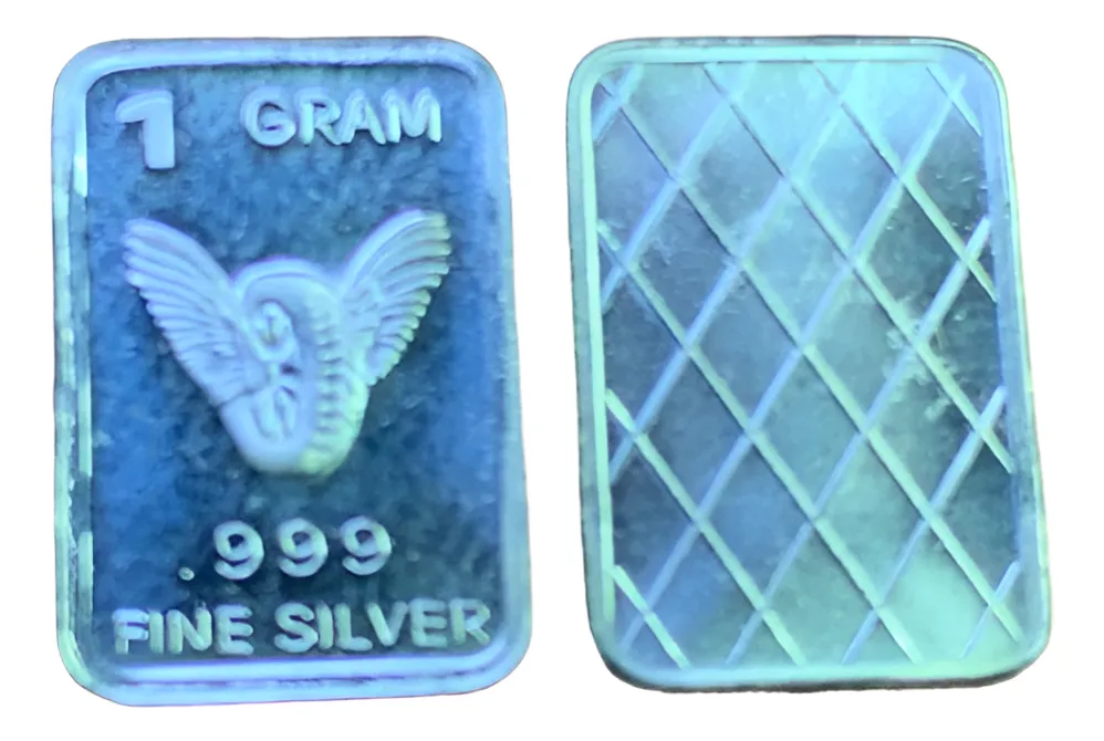 Robmar-U.S.A.-Lingote de 1 gramo de plata pura 0,999-n°65-una rueda alada,-este producto de origen de una refinería USA disponemos de 130 motivos diferentes, animales, armas, personajes, etc, numerados del 1 al 130 ideal para coleccionar e invertir porque la plata aumenta en dólares por lo tanto, es mejor que tener dólares asi si aumenta el dólar y aumenta la plata protege mejor su inversión a futuro además por su tamaño y precio hace accesible su venta en caso de necesidad, también están en esta pagina lotes de 3 unidades o de 5 unidades con motivos variados, al comprar estos lotes vera que el costo dividido por gramo le saldrá mas económico cada gramo, de regalo se adjunta un listado de todos los motivos y números más la historia de la refinería de estados unidos de lo que hace y detalles de ella como un certificado mas