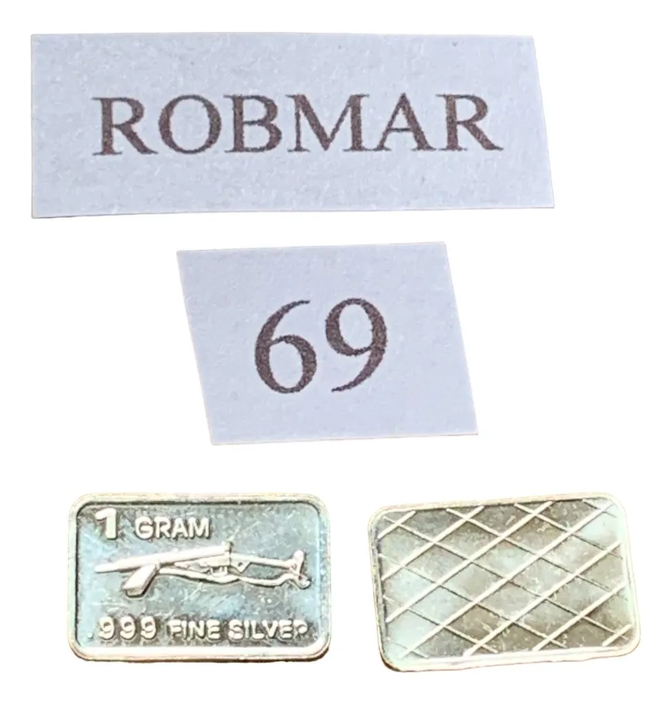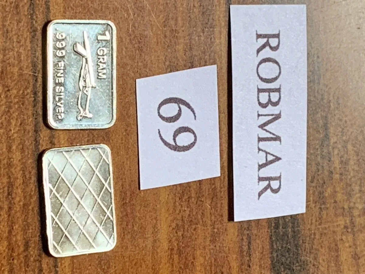 Robmar-U.S.A.-Lingote de 1 gramo de plata pura 0,999-n°69-un rifle con apoyo,-este producto de origen de una refinerĂa USA disponemos de 130 motivos diferentes, animales, armas, personajes, etc, numerados del 1 al 130 ideal para coleccionar e invertir porque la plata aumenta en dĂłlares por lo tanto, es mejor que tener dĂłlares asi si aumenta el dĂłlar y aumenta la plata protege mejor su inversiĂłn a futuro además por su tamaño y precio hace accesible su venta en caso de necesidad, tambiĂ©n están en esta pagina lotes de 3 unidades o de 5 unidades con motivos variados, al comprar estos lotes vera que el costo dividido por gramo le saldrá mas econĂłmico cada gramo, de regalo se adjunta un listado de todos los motivos y nĂşmeros más la historia de la refinerĂa de estados unidos de lo que hace y detalles de ella como un certificado mas
