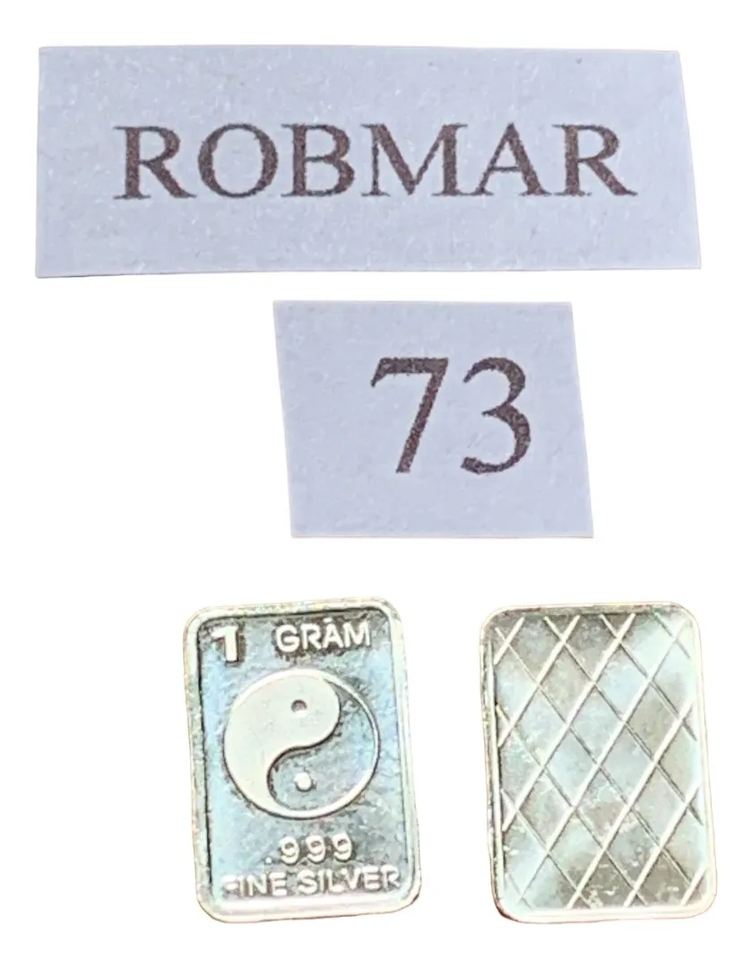 Robmar-U.S.A.-Lingote de 1 gramo de plata pura 0,999-n°73-el yin y el yan,-este producto de origen de una refinerĂa USA disponemos de 130 motivos diferentes, animales, armas, personajes, etc, numerados del 1 al 130 ideal para coleccionar e invertir porque la plata aumenta en dĂłlares por lo tanto, es mejor que tener dĂłlares asi si aumenta el dĂłlar y aumenta la plata protege mejor su inversiĂłn a futuro además por su tamaño y precio hace accesible su venta en caso de necesidad, tambiĂ©n están en esta pagina lotes de 3 unidades o de 5 unidades con motivos variados, al comprar estos lotes vera que el costo dividido por gramo le saldrá mas econĂłmico cada gramo, de regalo se adjunta un listado de todos los motivos y nĂşmeros más la historia de la refinerĂa de estados unidos de lo que hace y detalles de ella como un certificado mas