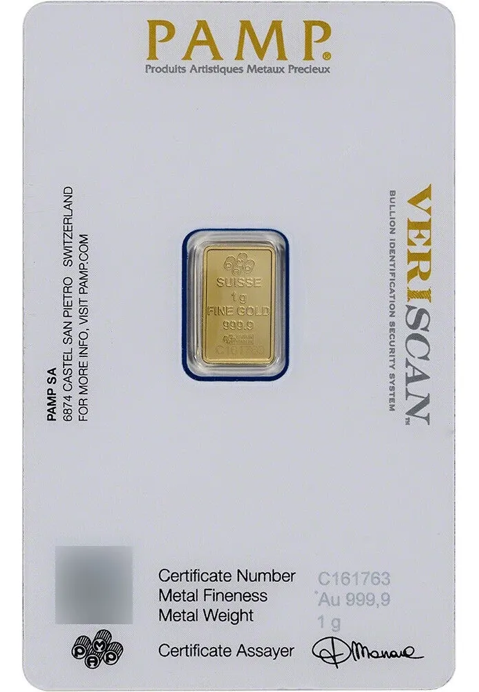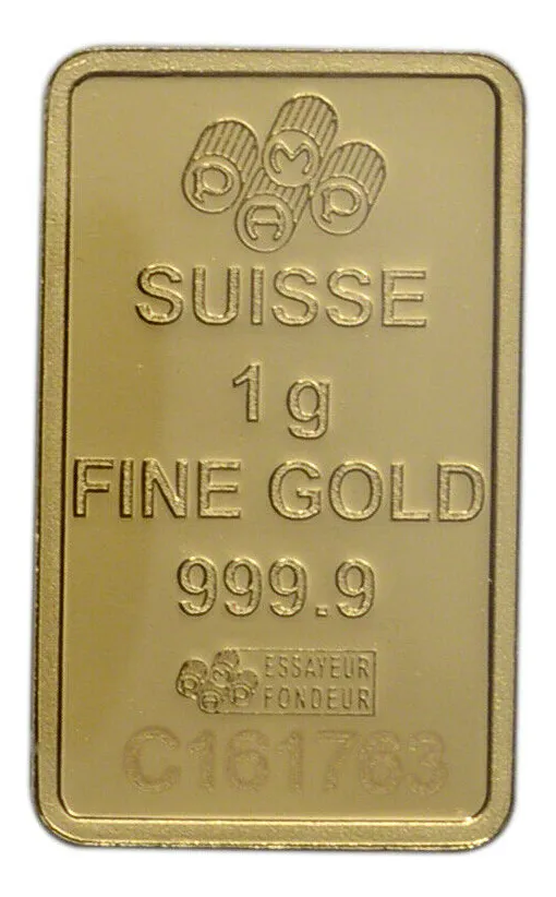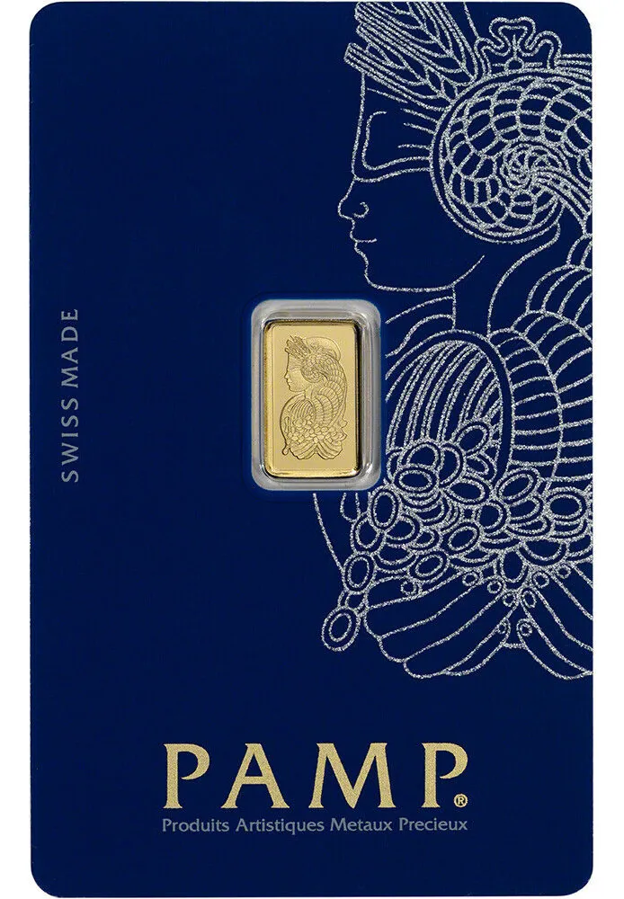 Lingote PAMP Suisse 1 g oro puro 24k diseño Diosa Fortuna. SÃmbolo de prosperidad en refinerÃa suiza premium.