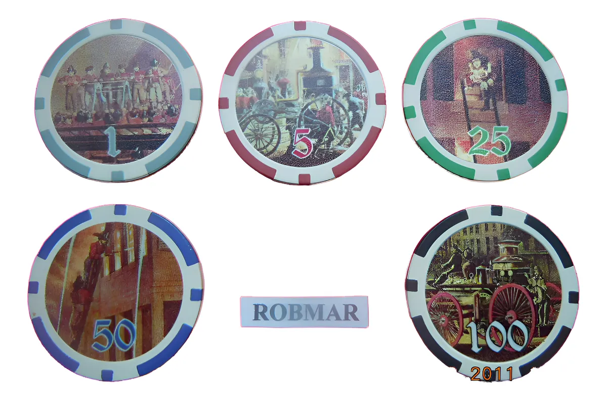Lote de cinco fichas raras usadas en ruletas de hoteles privados. Especialmente pensadas para quienes buscan piezas difÃciles de conseguir y con historia en el mundo del entretenimiento y la hotelerÃa de lujo.
