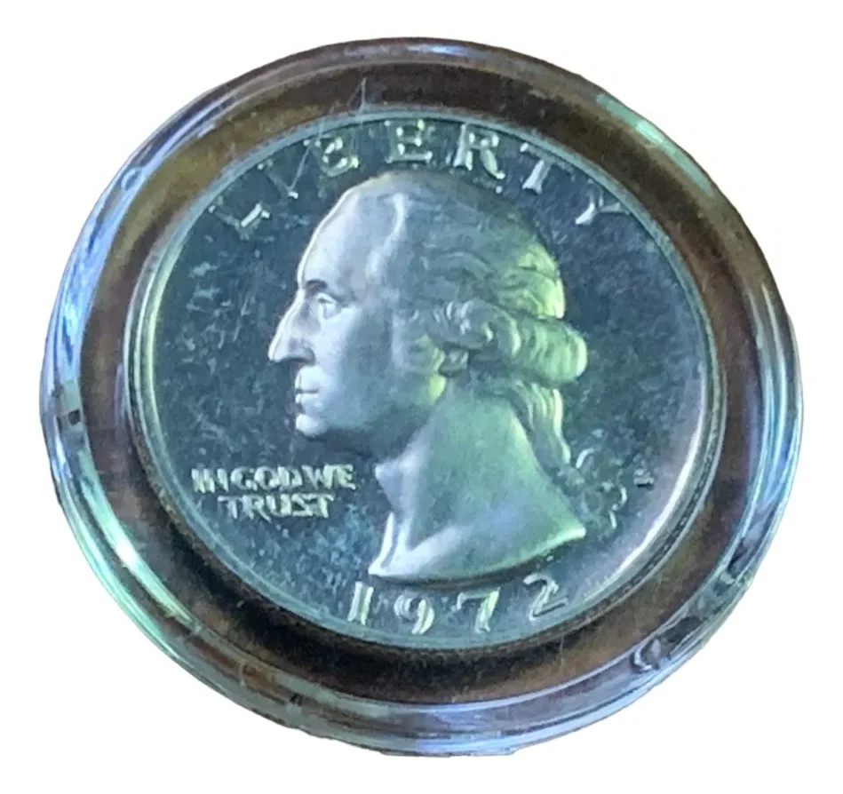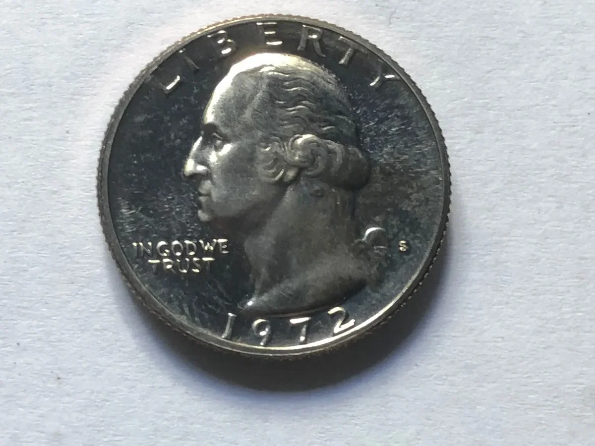Quarter 25 cents 1972-S proof, cobre‑nÃquel, ceca San Francisco. Moneda con acabado espejo muy atractivo para coleccionistas de pruebas USA. moneda de una ceca dificil de conseguir por su poca emision que emite esta ceca de usa, incluso es de (brillo espejo y sin circular