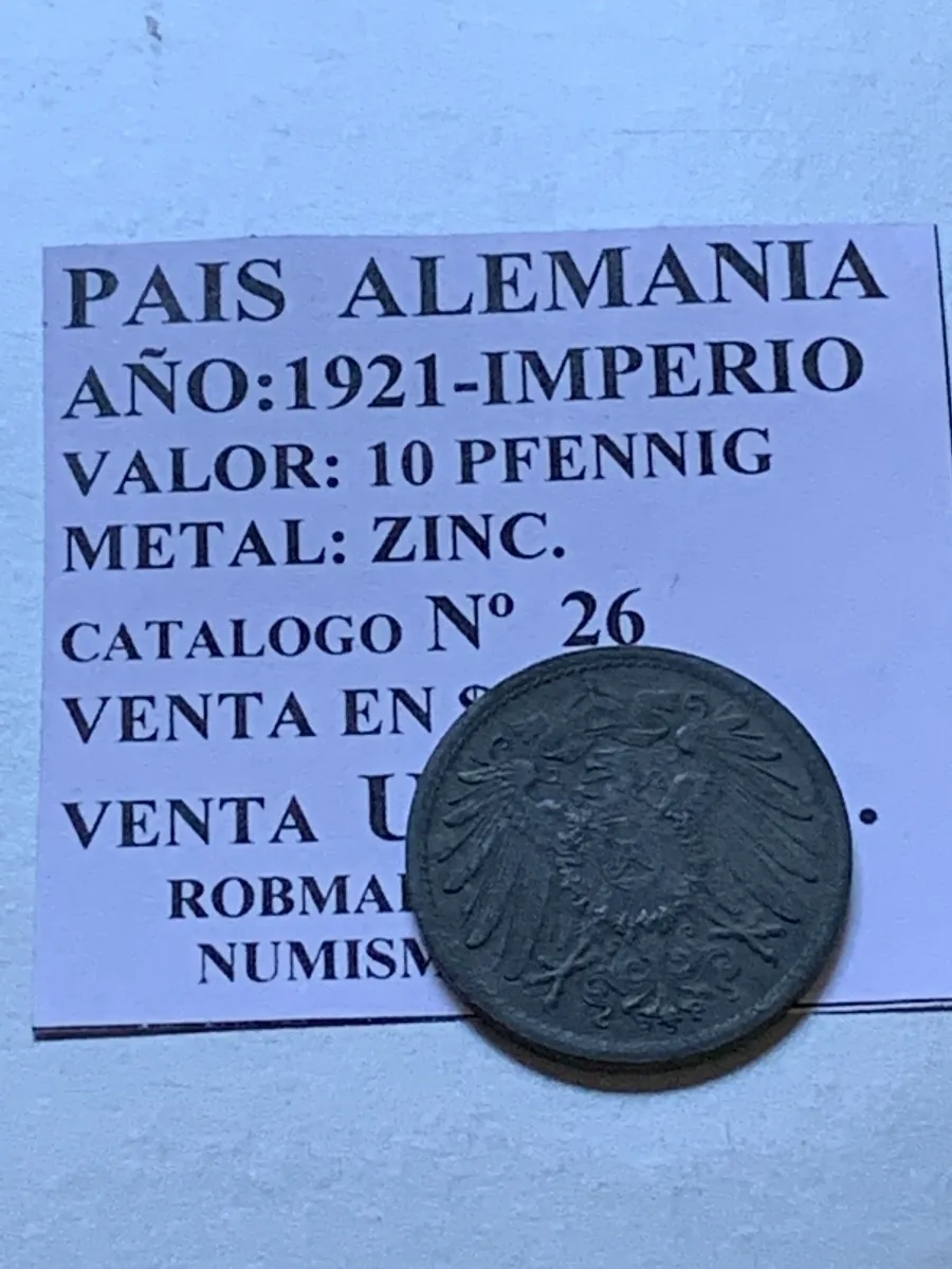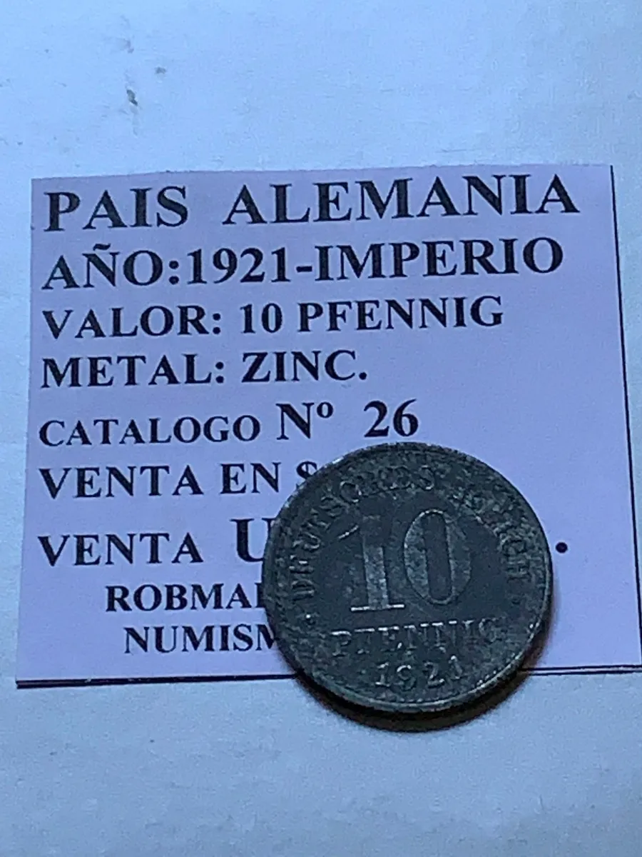 Robmar-Alemania-Moneda-10 Pfenning-1921-KM#26-Excelente EstadoRobmar-Alemania-Moneda-10 Pfenning-1921-KM#26-Excelente Estado