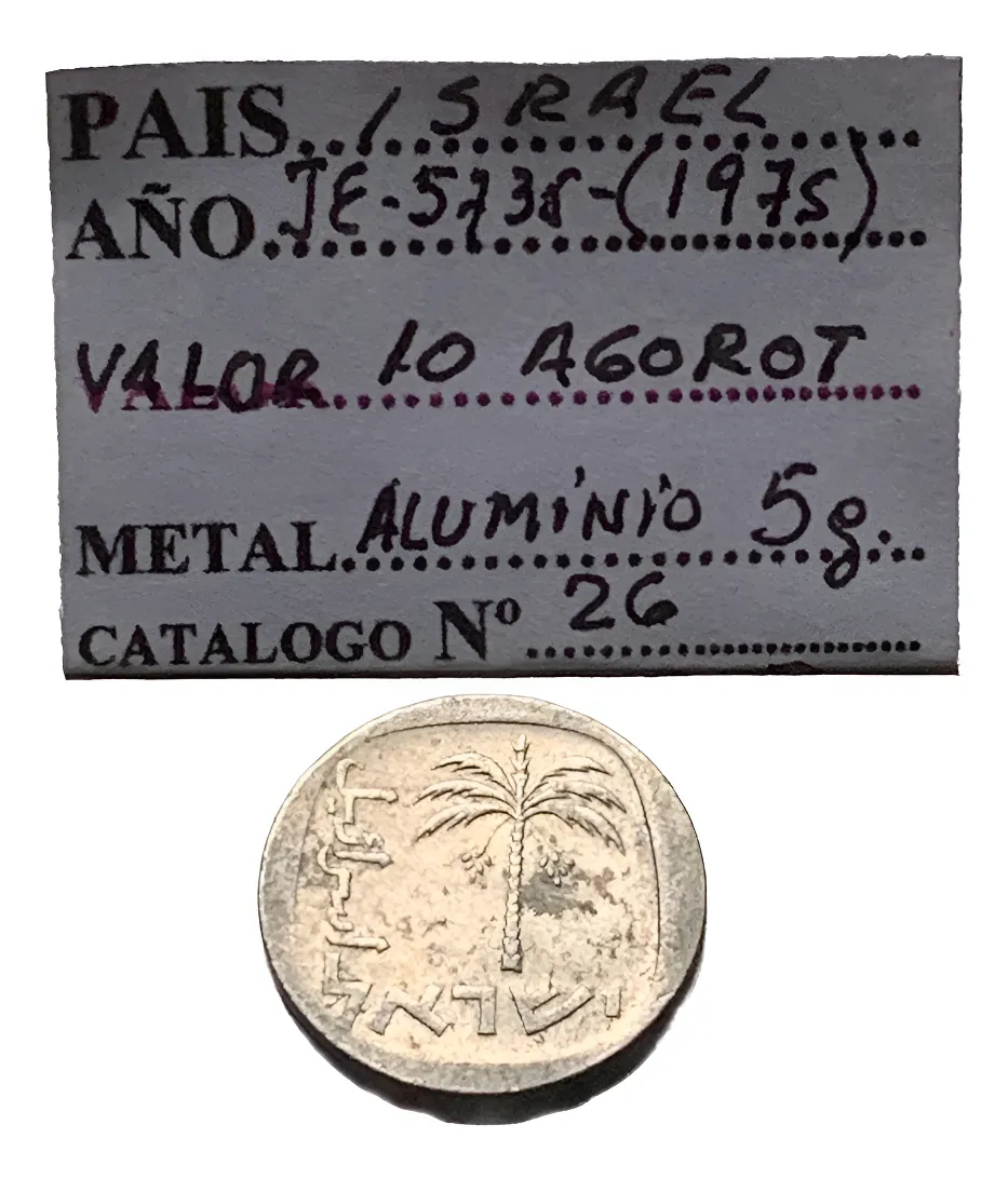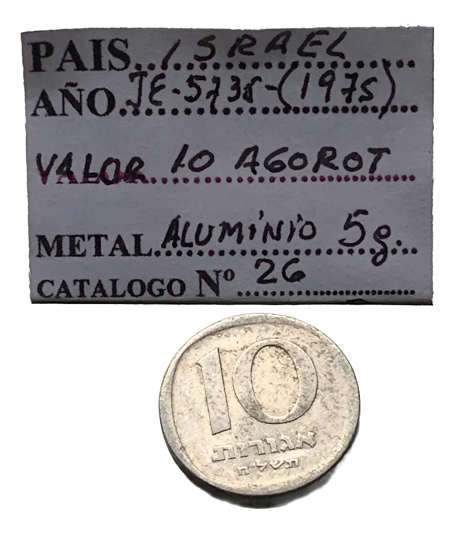 Robmar-Israel-Moneda-10 Agorot-1975-Aluminio 5g-KM#26Robmar-Israel-Moneda-10 Agorot-1975-Aluminio 5g-KM#26