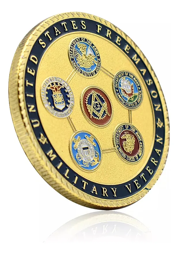 Moneda masónica con Ojo y sÃmbolos militares, baño de oro 24k. Doble temática esotérica hay publicados mas motivos de esta secta