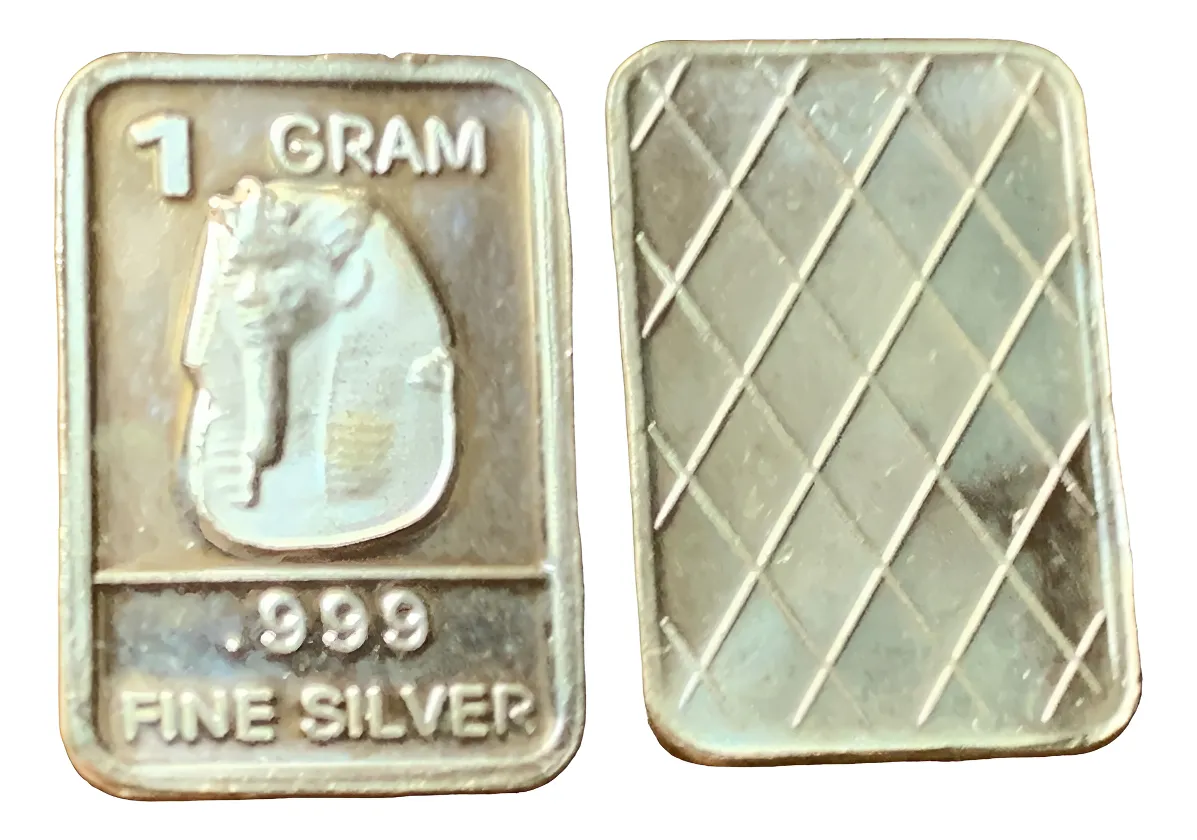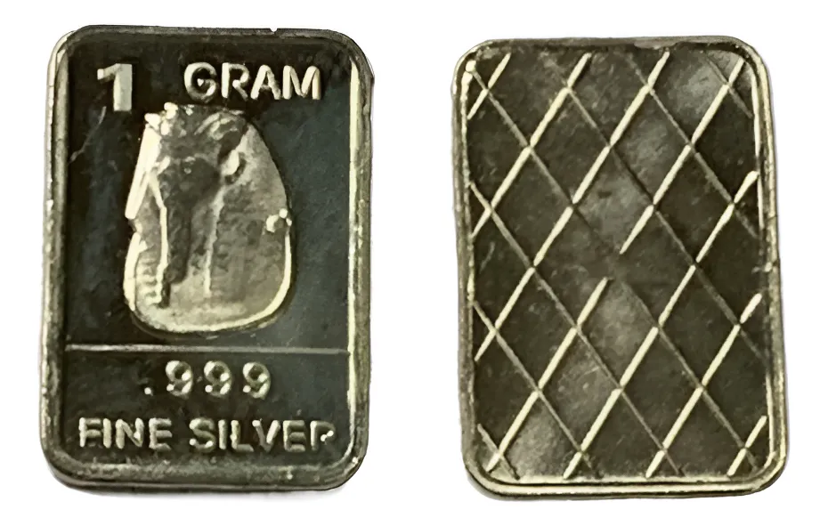U.S.A.-Lingote de 1 gramo de plata pura 0,999-n°107-el faraon tutancamon,-este producto de origen de una refineria USA disponemos de 130 motivos diferentes, animales, armas, personajes, etc, numerados del 1 al 130 ideal para coleccionar e invertir porque la plata aumenta en dolares por lo tanto, es mejor que tener dolares asi si aumenta el dolar y aumenta la plata protege mejor su inversion a futuro ademas por su tamaño y precio hace accesible su venta en caso de necesidad, tambien estan en esta pagina lotes de 3 unidades o de 5 unidades con motivos variados, al comprar estos lotes vera que el costo dividido por gramo le saldra mas economico cada gramo, de regalo se adjunta un listado de todos los motivos y numeros mas la historia de la refineria de estados unidos de lo que hace y detalles de ella como un certificado mas