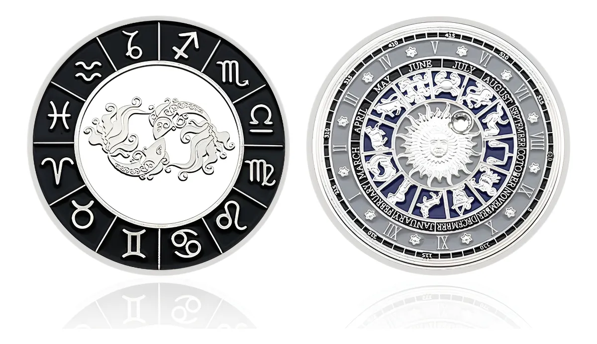 Versión bañada en plata 24k. de Piscis con sÃmbolos zodiacales. Signo espiritual