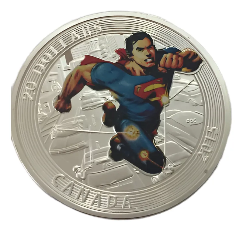 Monedas temáticas de Superman, inspiradas en películas y cómics. Pieza llamativa para coleccionistas de superhéroes. heroes de peliculas famosas personajes famosos para coleccionar los cineastas y numismaticos hay otros personajes en esta pagina, tambien recordados por el publico, consulte