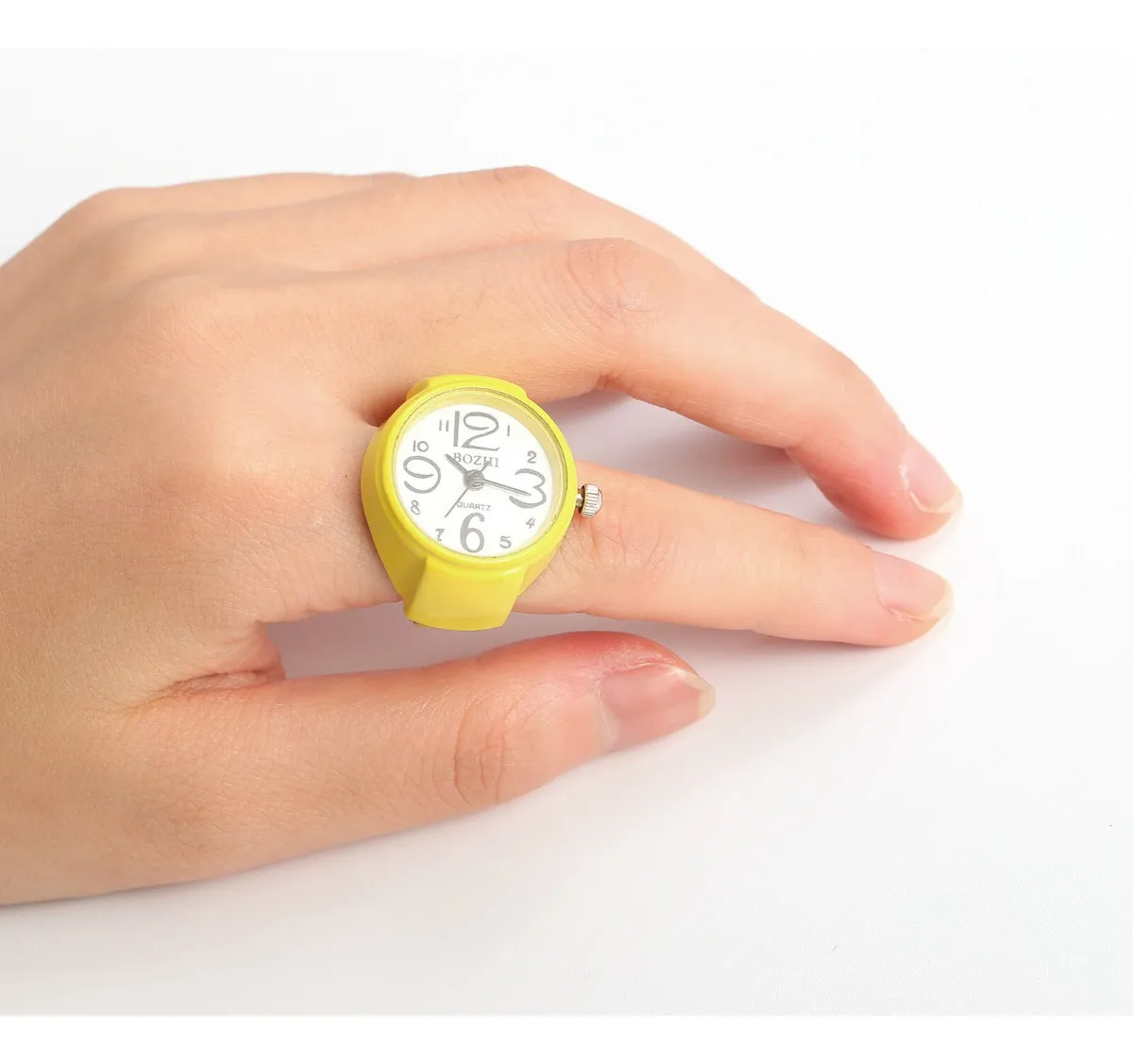 Anillo moderno extensible con reloj integrado, acabado con baño de oro 24K. un diseño nuevo, la pieza, ideal para quienes buscan joyerÃa funcional con estilo clásico.y novedoso