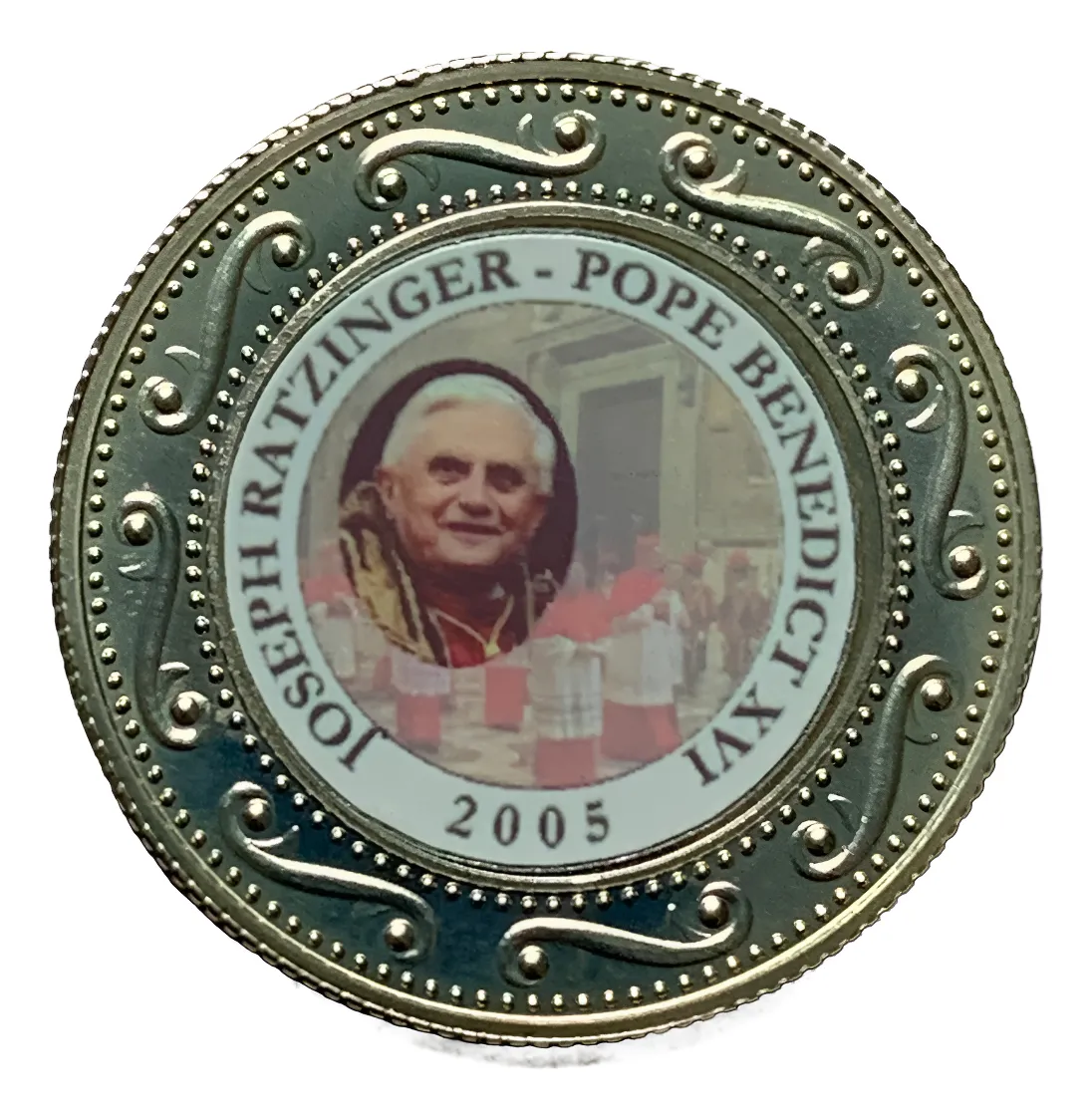 Otra emisión de Somalia 1 dólar 2005 sobre el Papa, en cobre‑níquel. Amplía la serie papal para colecciones temáticas.conmemorando la visita del papa en ese pais con su imagen , moneda muy requerida por los cristianos religiosos del mundo por su carisma y bondad no puede faltar en su coleccion-rara y poca emisionconmemorando la visita del papa en ese pais con su imagen en color, moneda muy requerida por los cristianos religiosos del mundo apodado EL Papa benedito por su carisma
