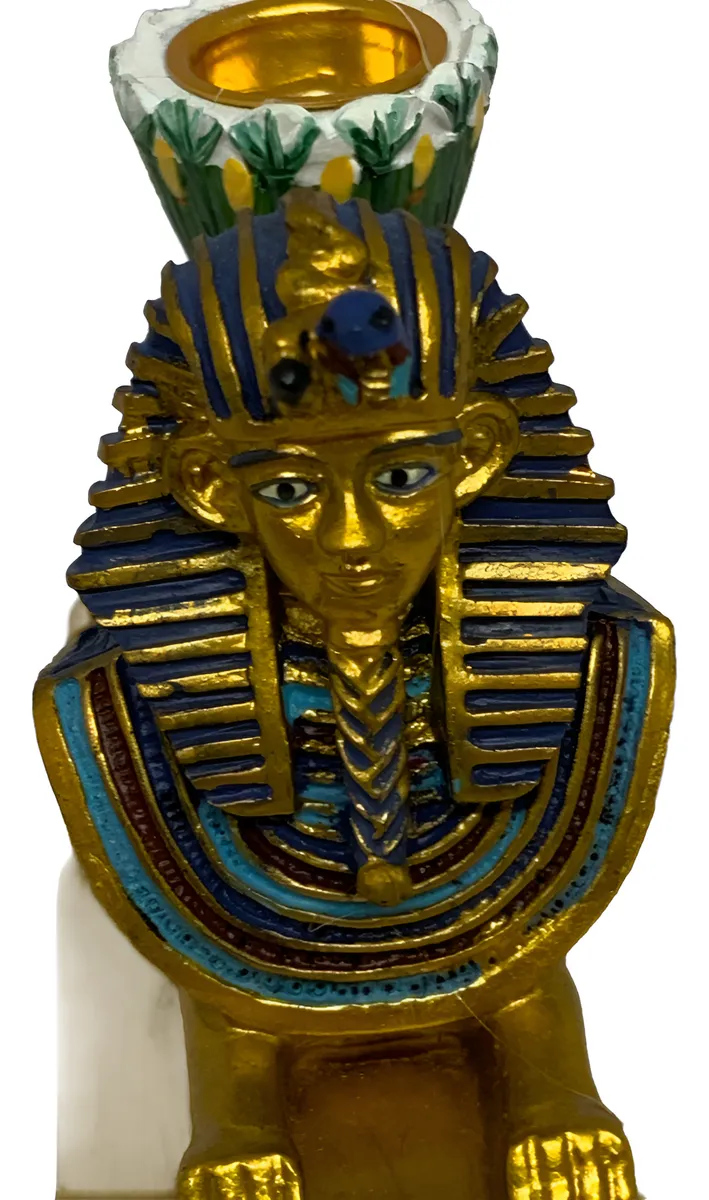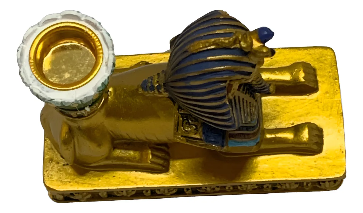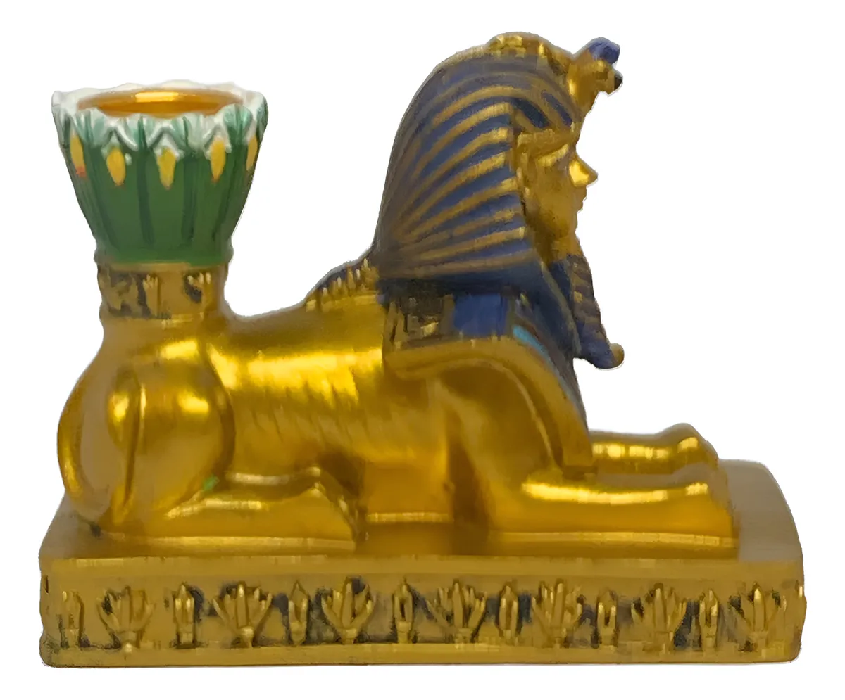 Estatua egipcia de león, sÃmbolo de poder y protección. Es pieza recomendada para coleccionistas y como regalo relevante por su significado cultural y diseño atractivo.