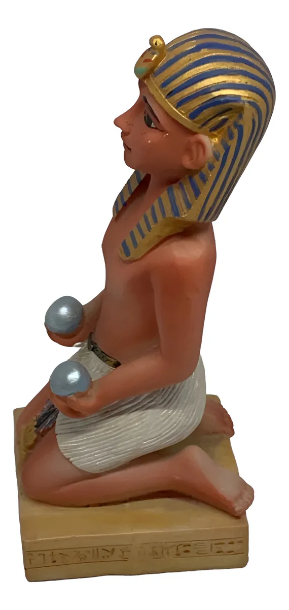 Souvenir decorativo del emperador egipcio acompañado de dos esferas, evocando el misticismo y el poder de los faraones. Es perfecto para amantes de la egiptologÃa y objetos exóticos.