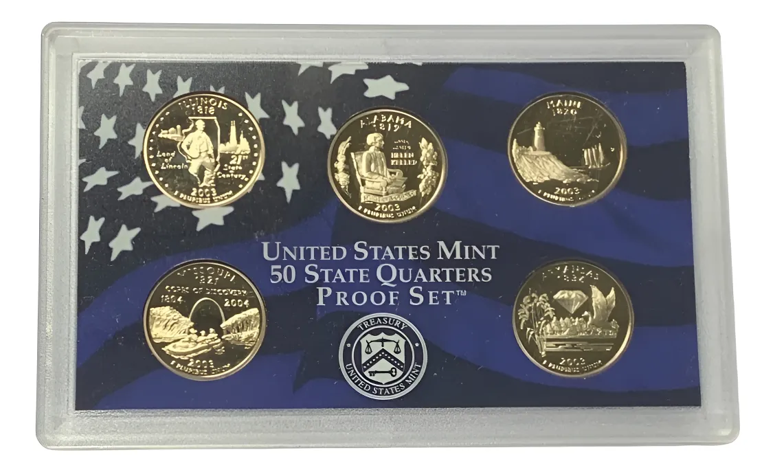 Blister sellado con 5 monedas quarter proof S del 2003 USA, garantÃa de autenticidad y acabado espejo. Exquisita presentación para coleccionistas hay otros años iguales de la ceca de san francisco para entendidos