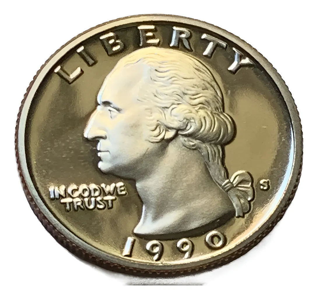 Moneda quarter 25 centavos 1990 S en acabado proof certificada. ceca S, encapsulada. Pieza ideal para colecciones oficiales y para invertir en metales preciosos.