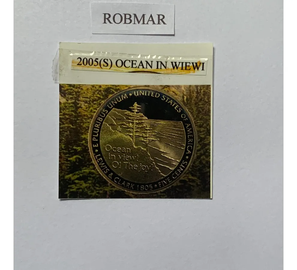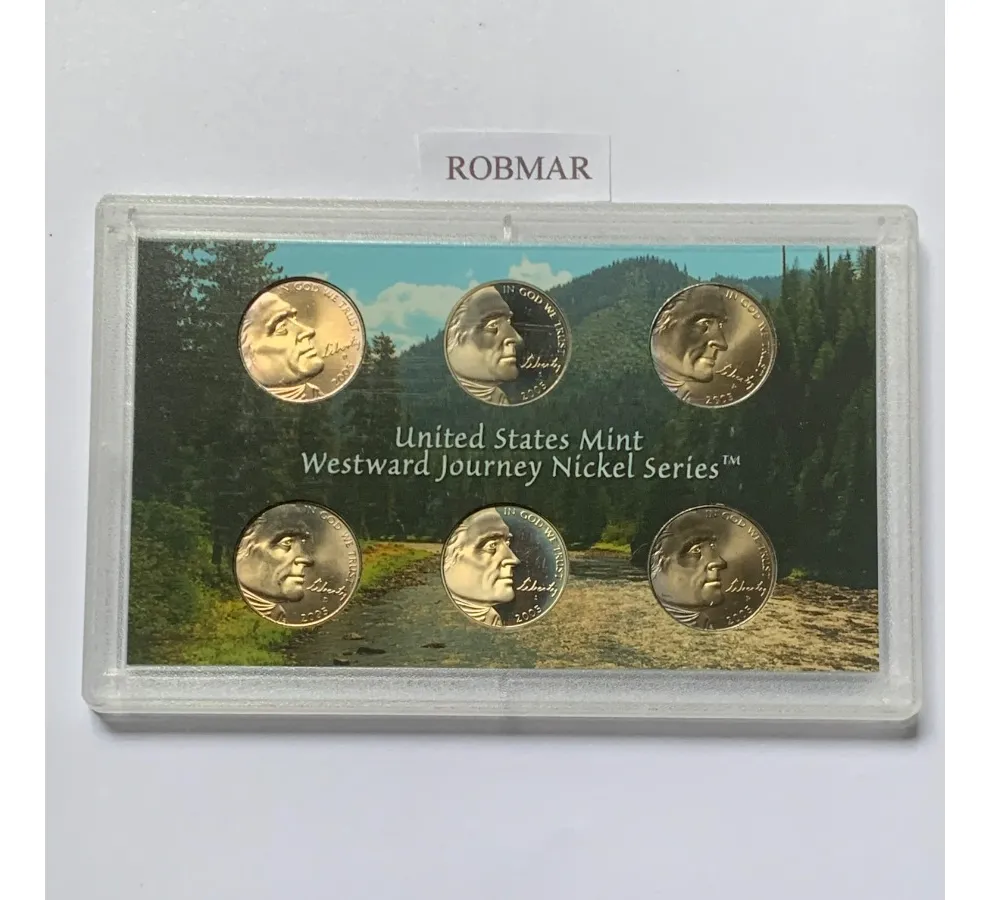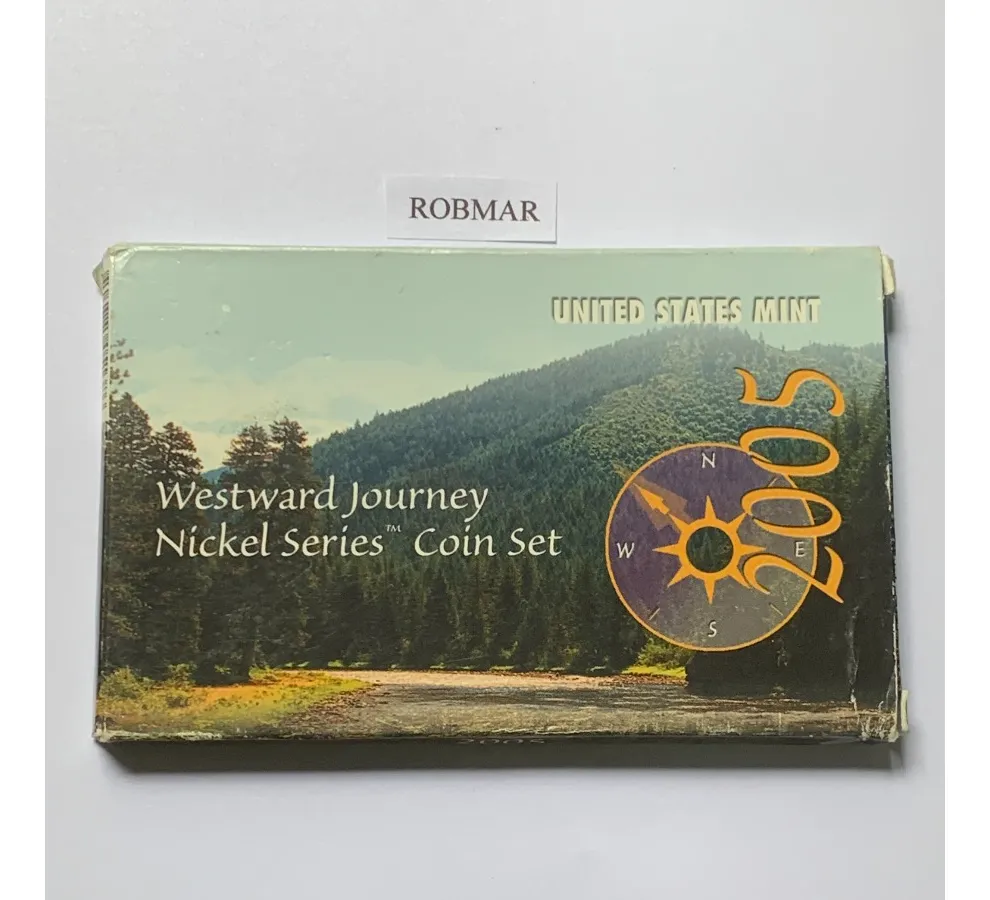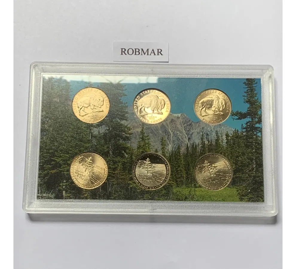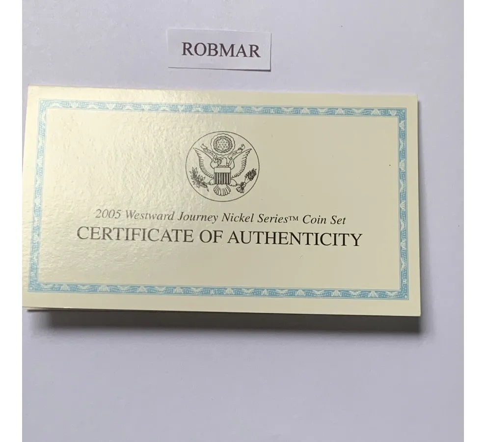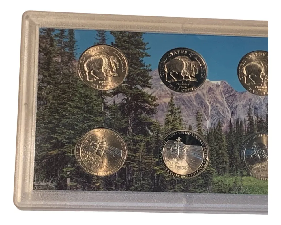 Estuche oficial con cinco monedas quarter 25 centavos USA edición conmemorativa 2005. Presentación proof y encapsulado para protección y colección.