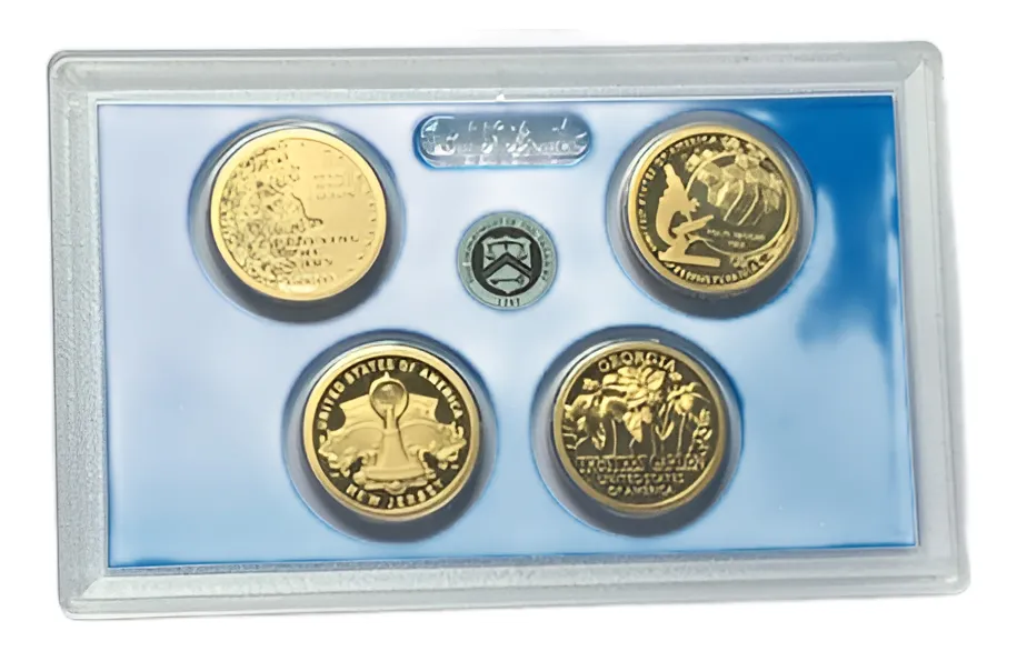 Set con estuche y un blister adicional con 4 monedas proof de la serie Innovación 2019 S. Ideal para colecciones modernas y temáticas.