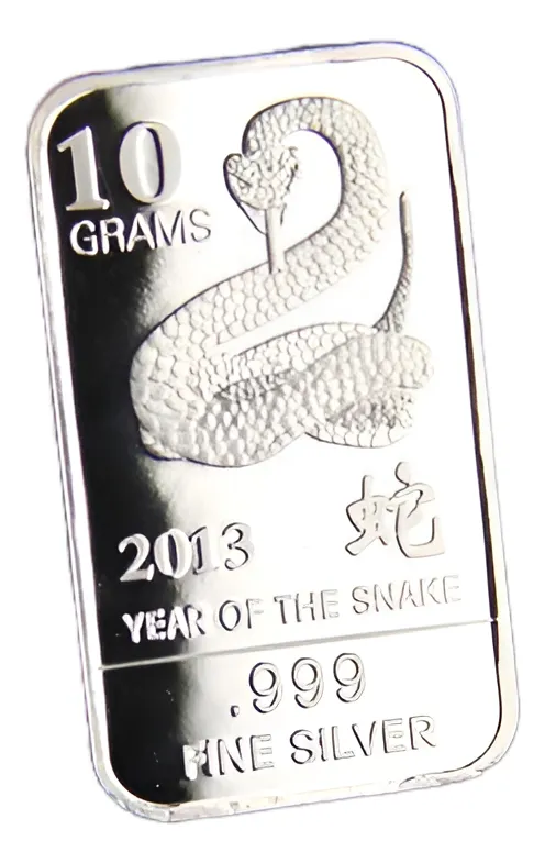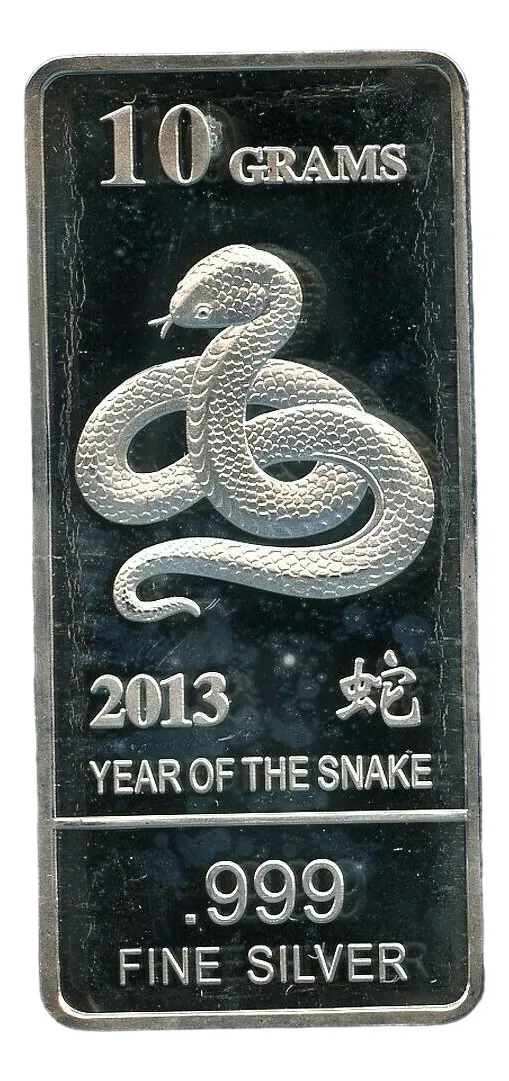 Robmar-U.S.A.-Lingote de 10 gramos de plata pura 0,999 año de la vivora