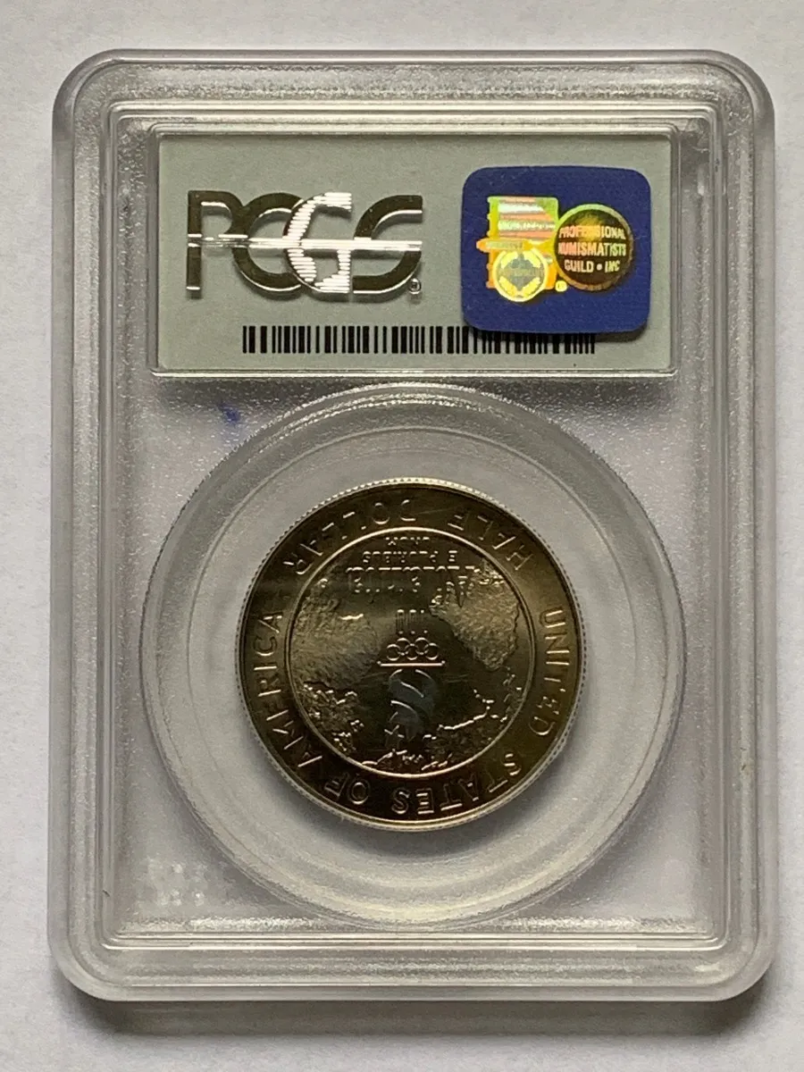 Medio dólar USA 1995-S en blister oficial de Atlanta Olímpica. Moneda conmemorativa en excelente presentación para coleccionistas de Juegos Olímpicos en blister sellado y certificado ms69 por su brillante conservacion, con poca emision para entendidos