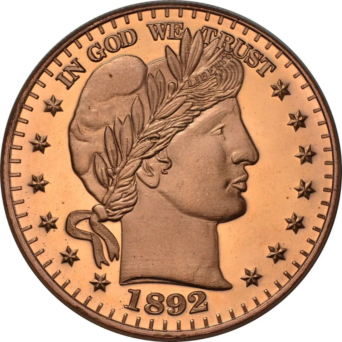 Robmar-USA-Moneda De Cobre Puro 24k 0,999-N°581, réplica de Barber Nickel, diseño clásico-1892