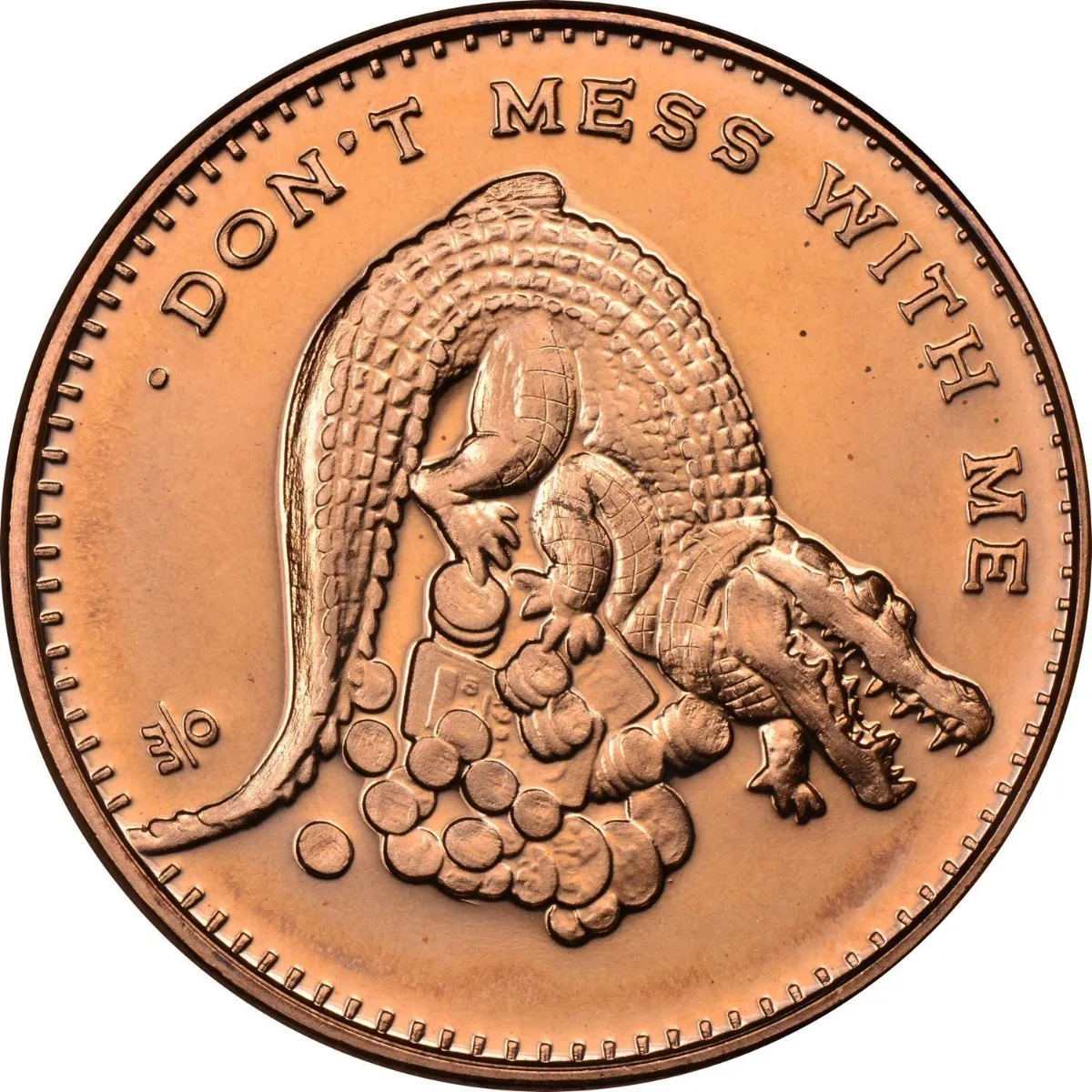 Robmar-USA-Moneda De Cobre Puro 24k 0,999-N°611-«Don’t Mess With Me» es un desafiante cocodrilo
